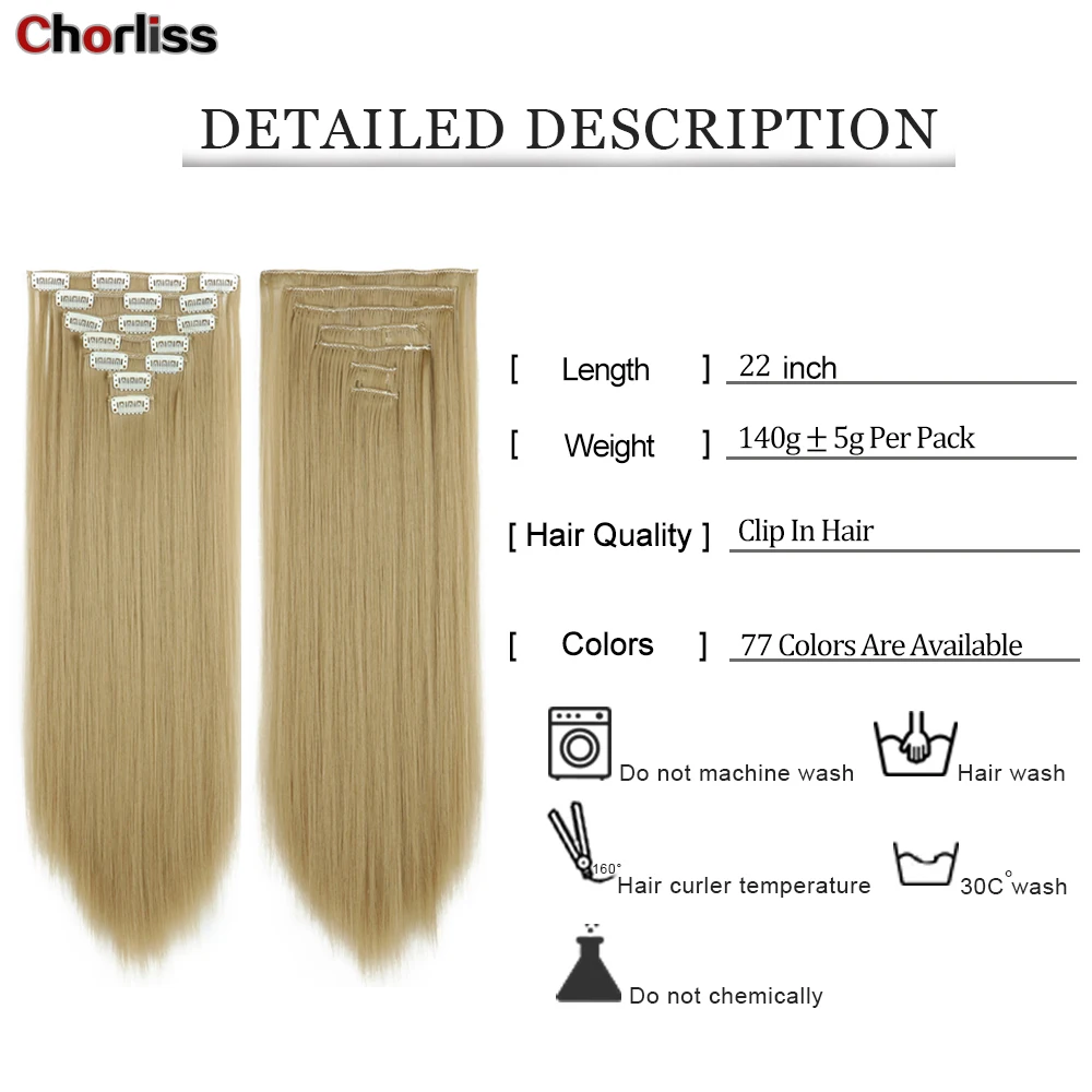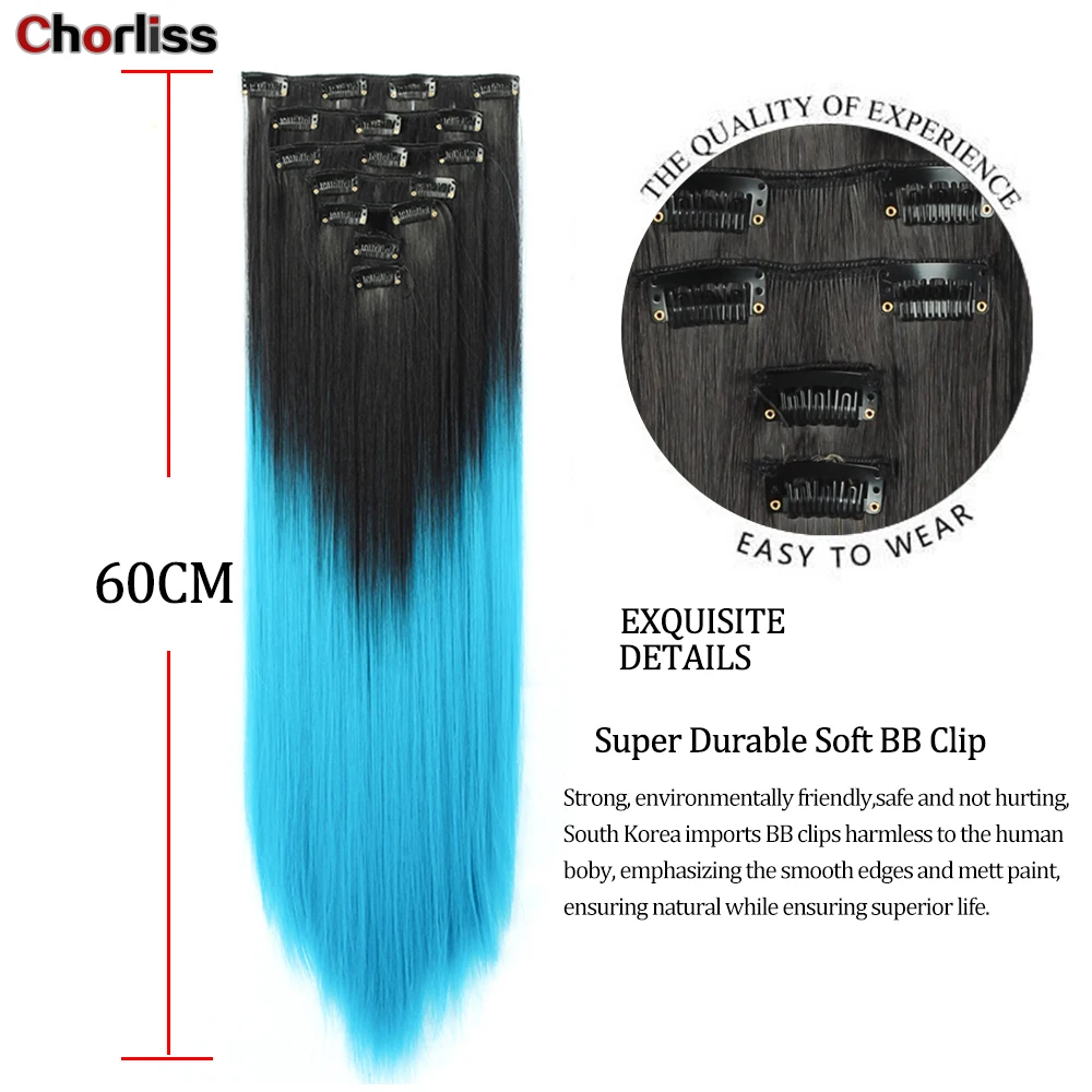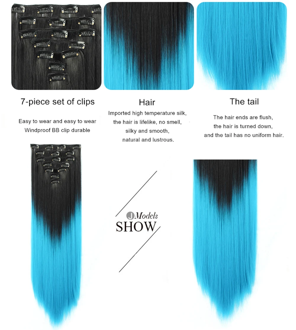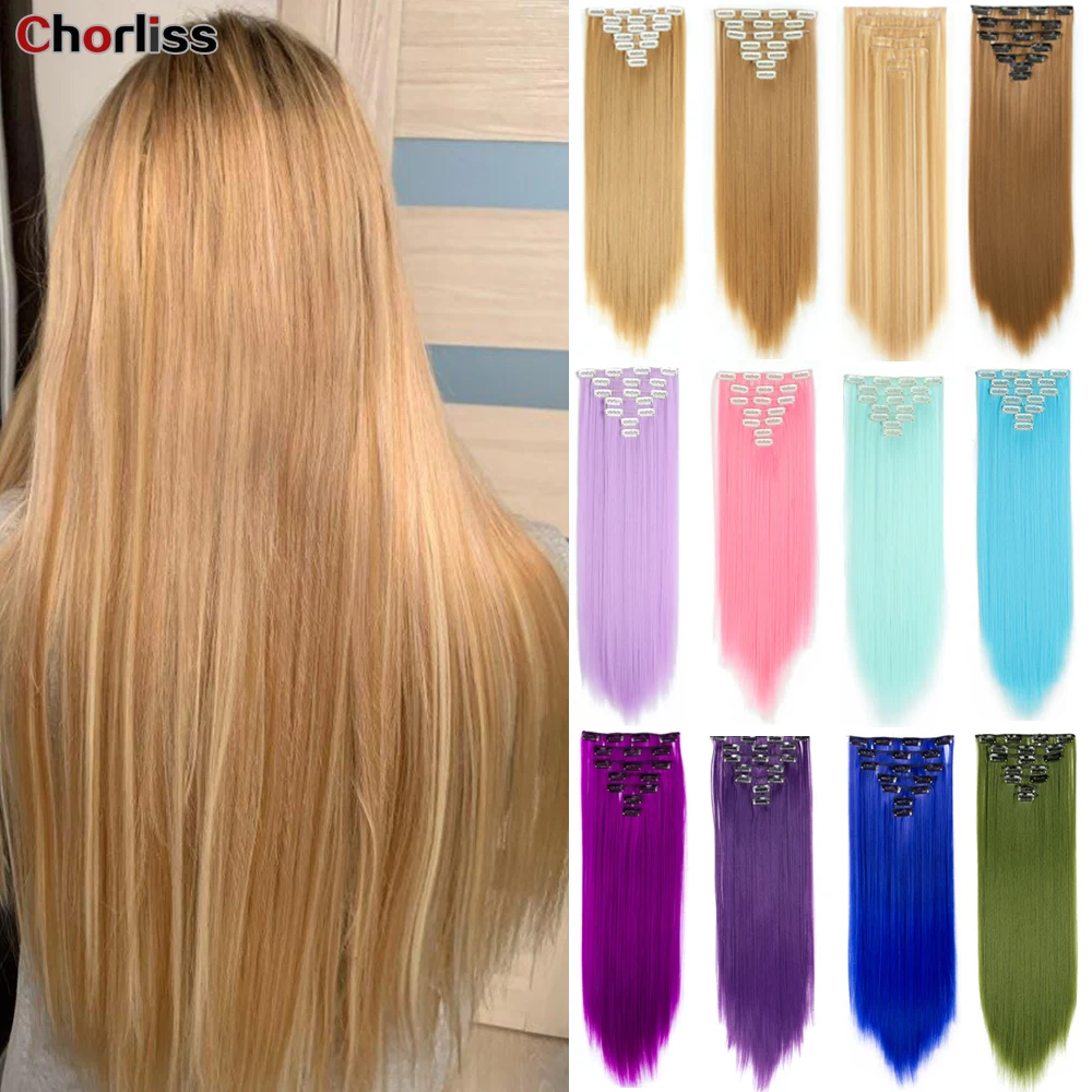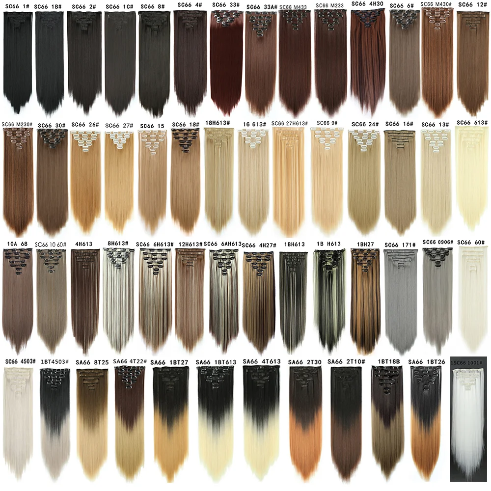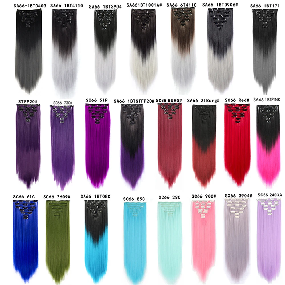 Шиньон из синтетического волокна с длинными прямыми волосами, 7 шт.компл., 16 зажимов