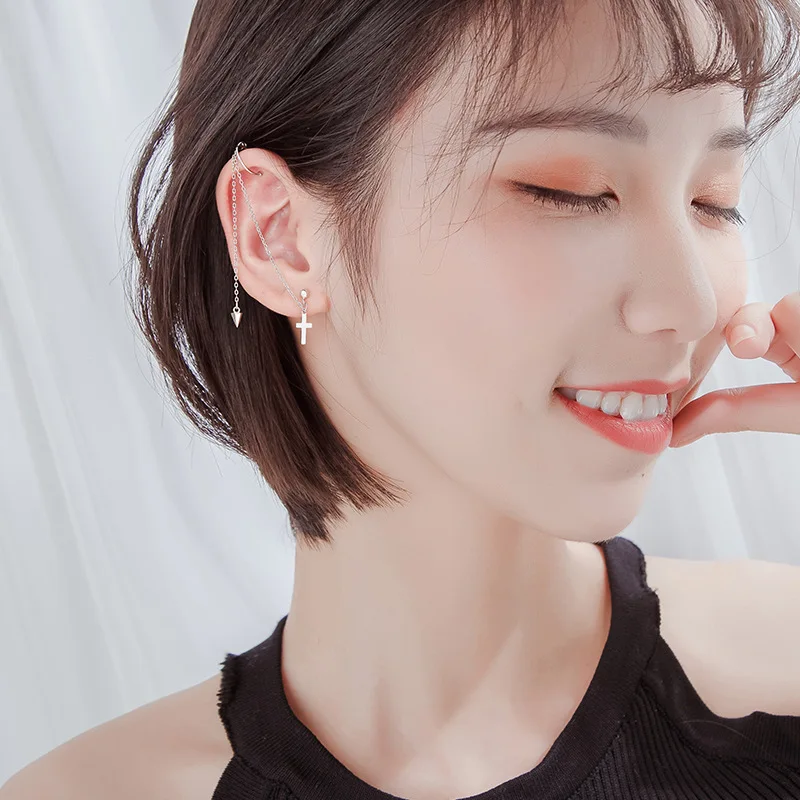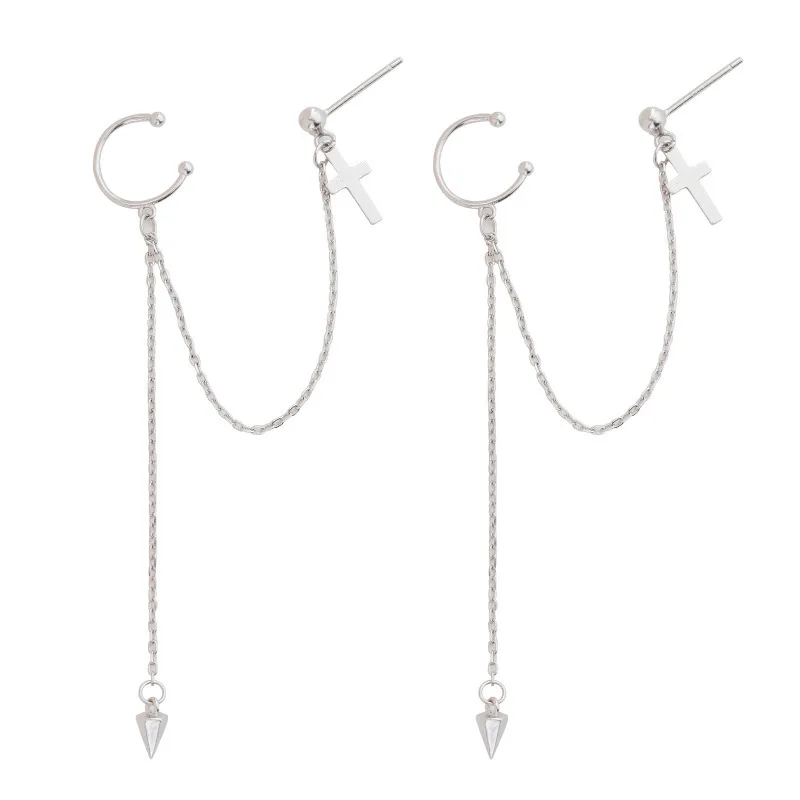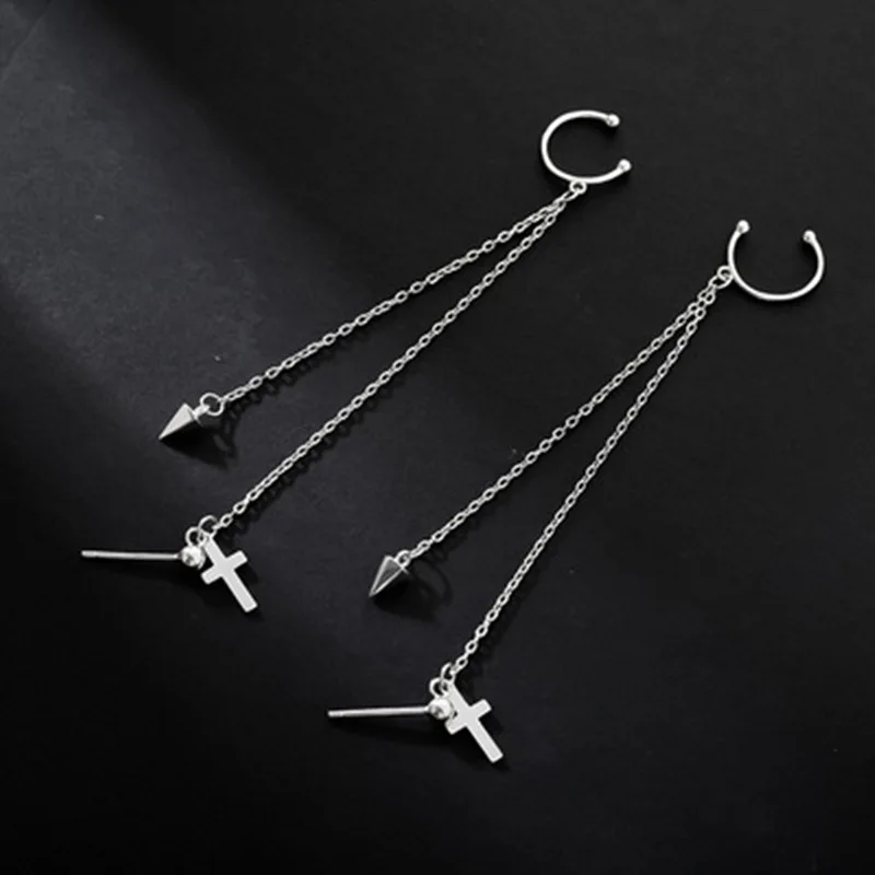 Женская Длинная кисточка Rinhoo, серебристого цвета, серьги-капли с крестиком