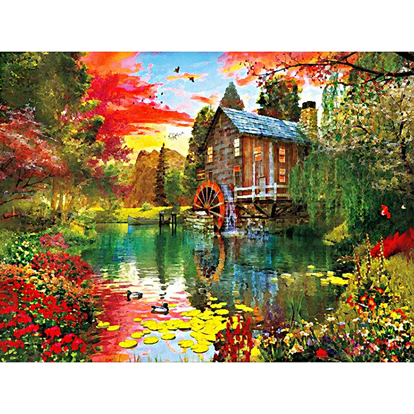 5D diamante pintura paisaje de la casa de campo punto de cruz diamante bordado mosaico imagen decoracin del литий-полимерный