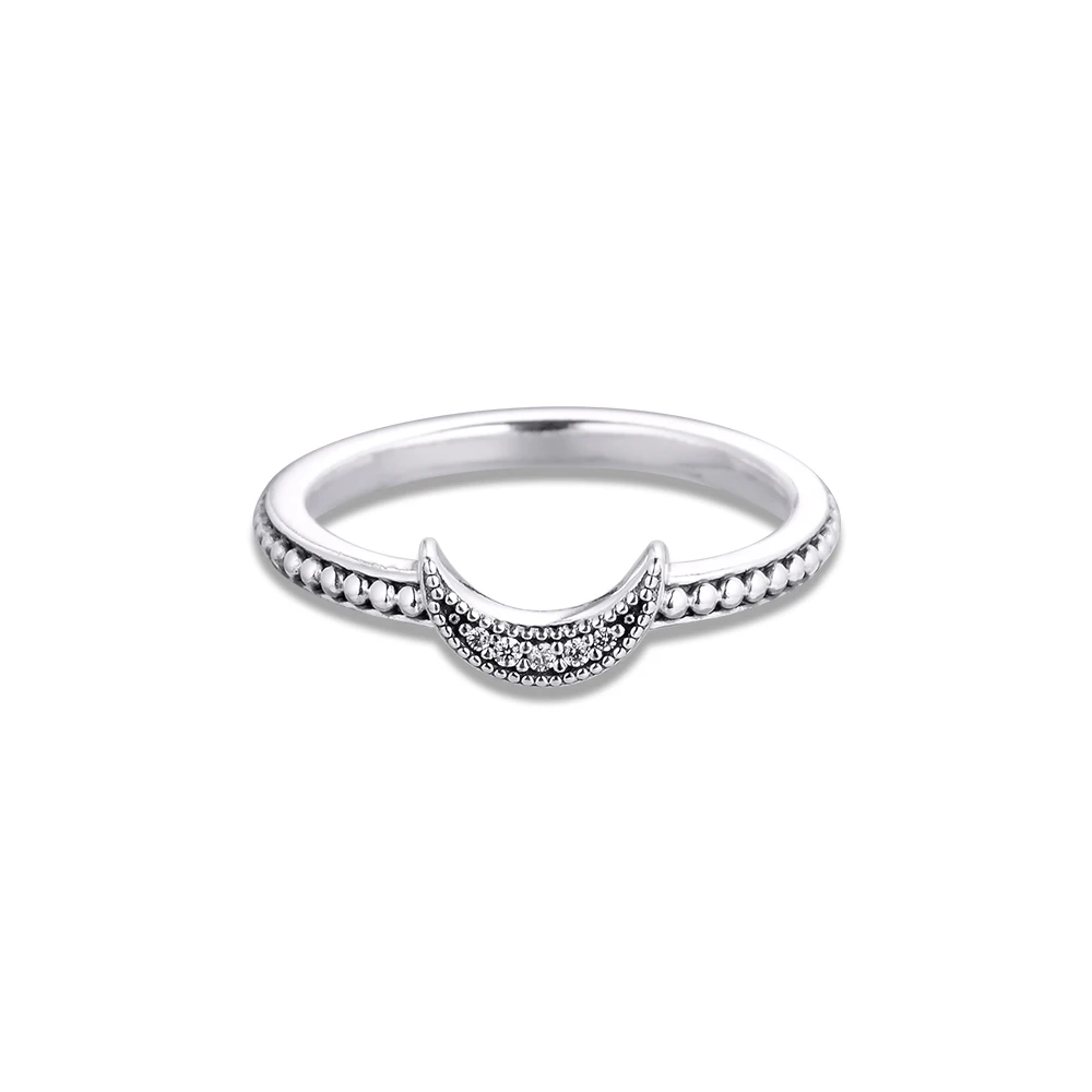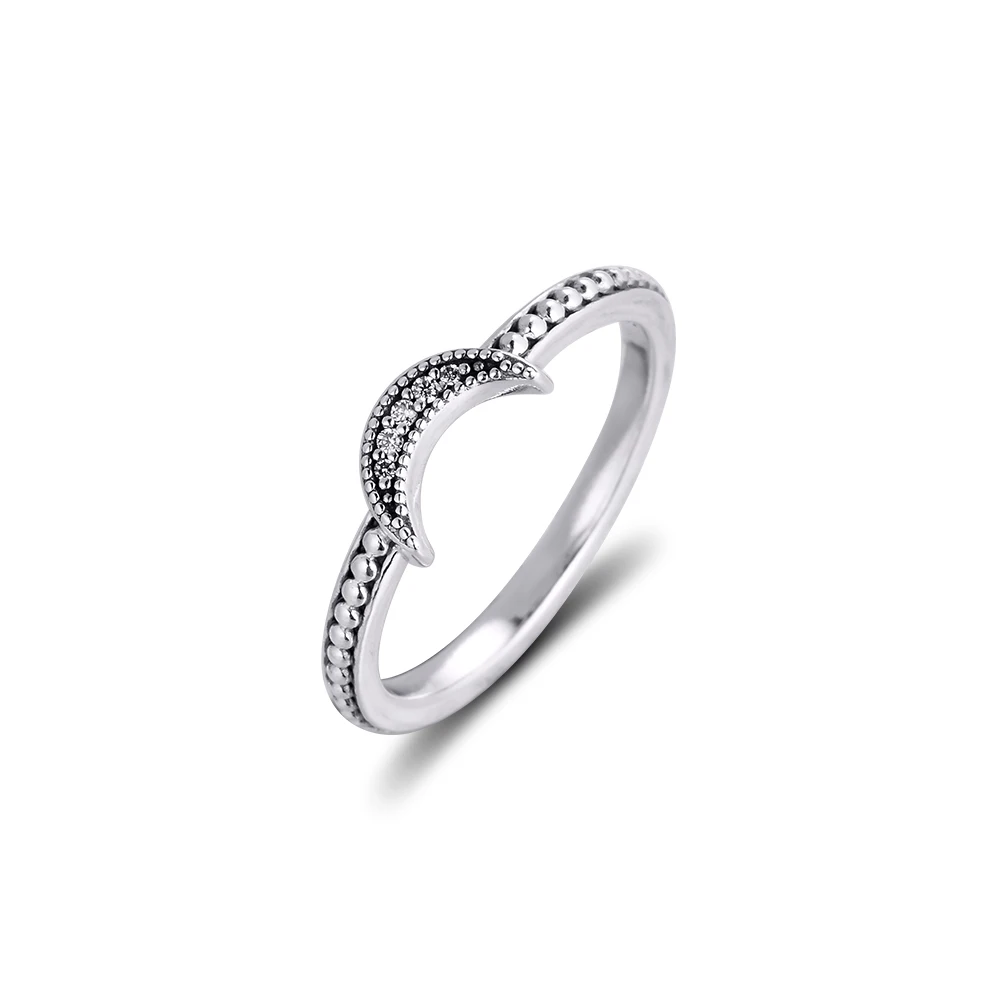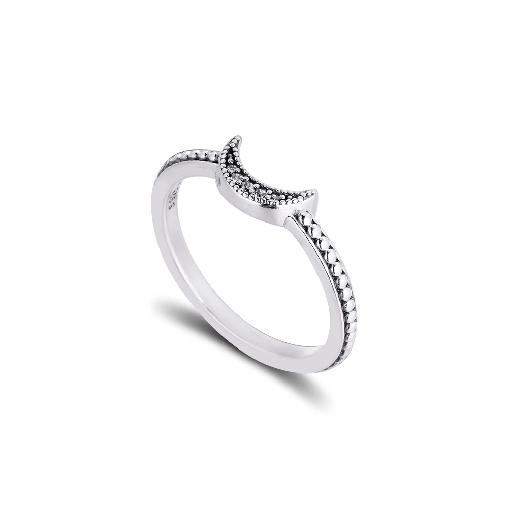 Подлинное кольцо из стерлингового серебра 925 пробы с полумесяцем и бисером, обручальные кольца для женщин, модные ювелирные изделия, подарок, Bijoux Femme