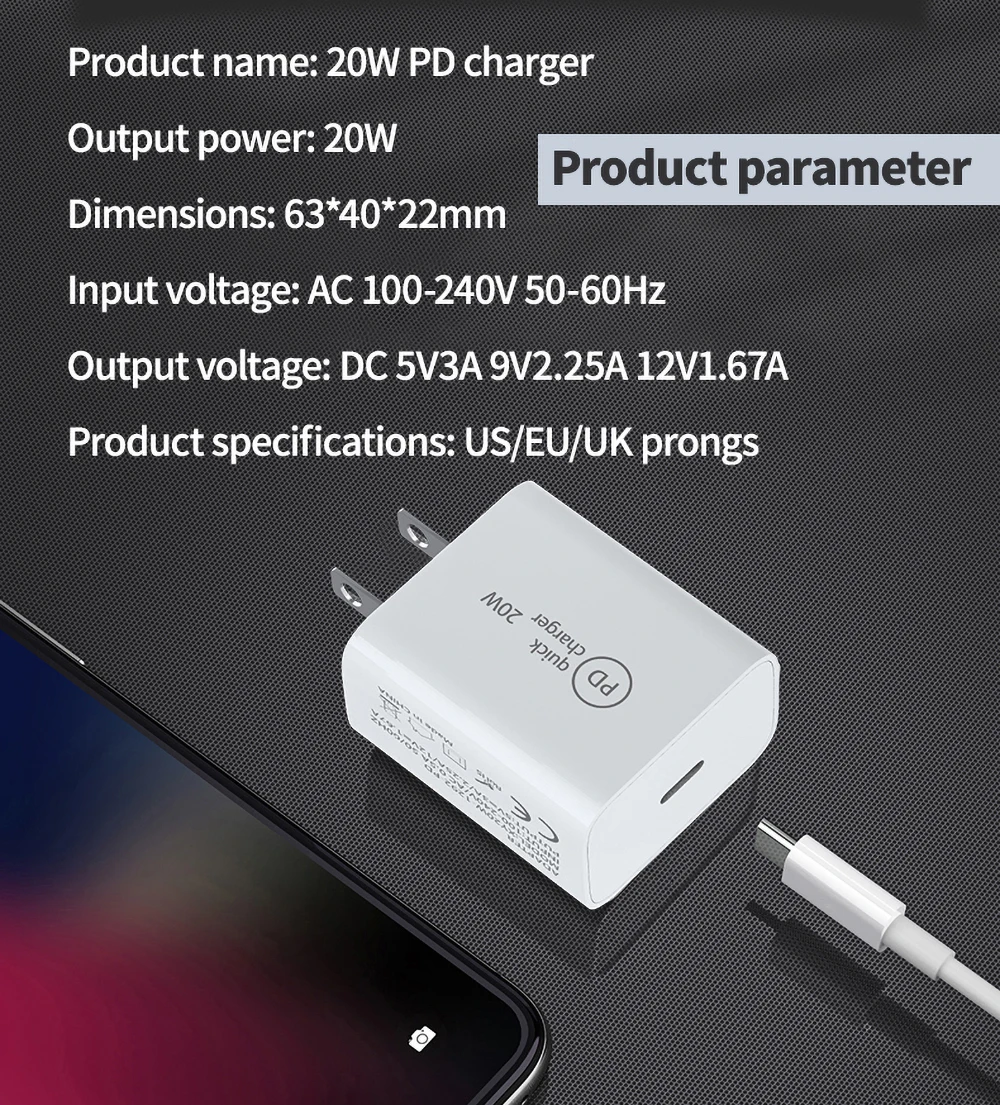 1,20 Вт PD быстрая зарядка, высокий ток, безопасная и быстрая зарядка