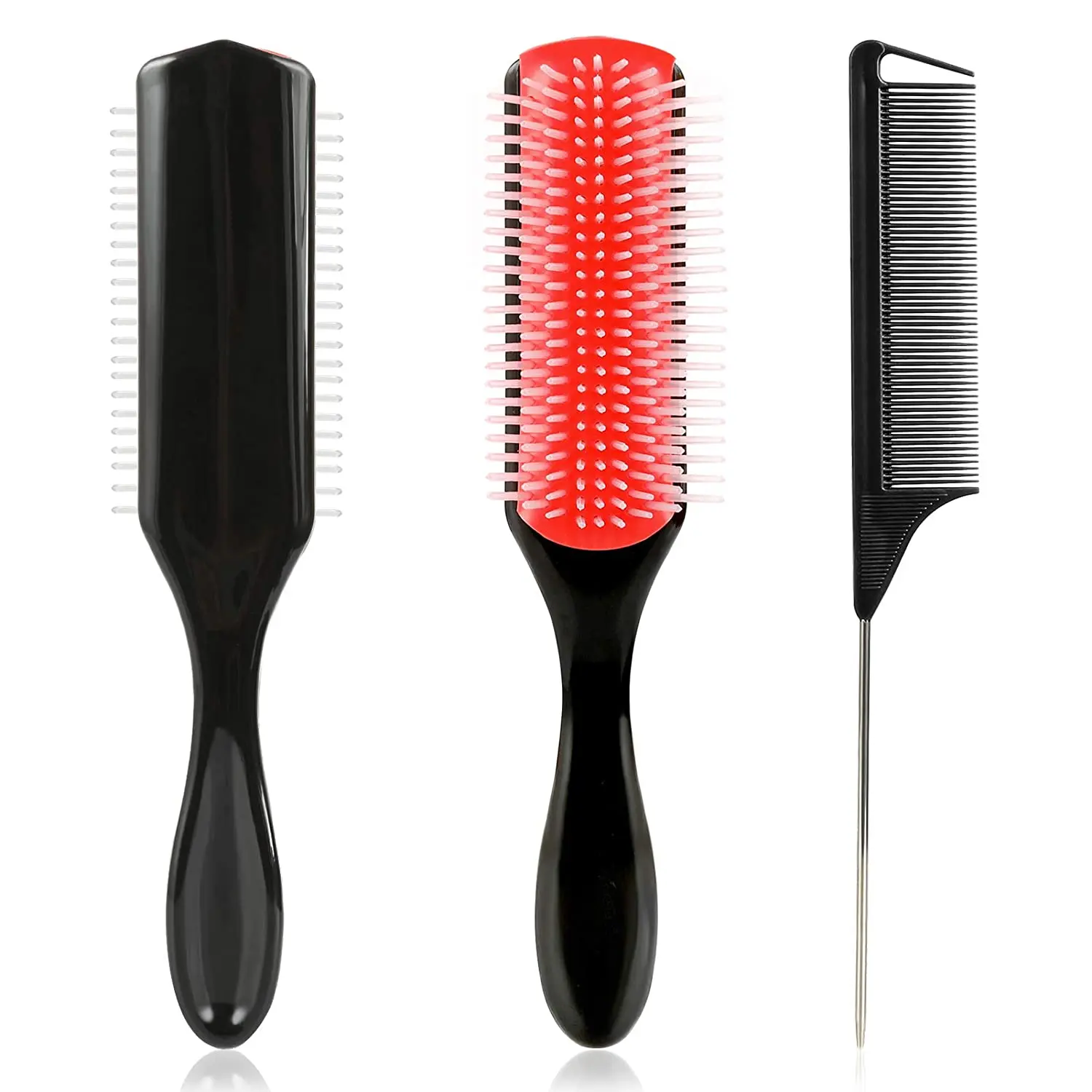 Щетки для волос для женщин и мужчин, 2 шт.: 1 упаковка, 9-рядная щетка с нейлоновой подушкой и 1 упаковка, Расческа с крысиным хвостом для домашнего салона, укладки волос