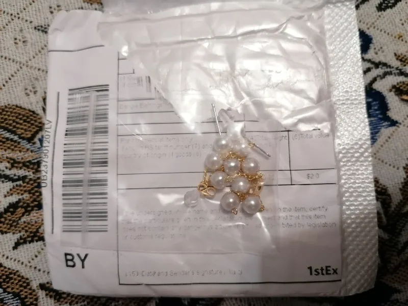 пришли серьги быстро, но на одной сережке нет крепления. Точнее металической палочки, которую вдевают в ухо. Так что, бусенку не куда крепить. - одна сережка.