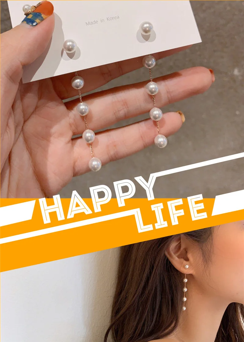 Женские длинные серьги с искусственным жемчугом, свадебные серьги с Белым Круглым жемчугом, подарочные украшения в Корейском стиле, 2020