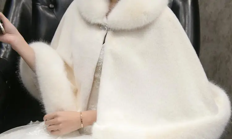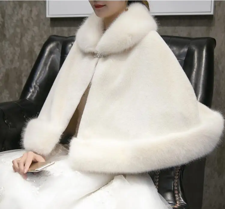 Высококачественный болеро, свадебная накидка цвета слоновой кости из искусственного меха, накидка с брошью стразы, шарф с мехом, зимнее женское пальто, свадебная шаль