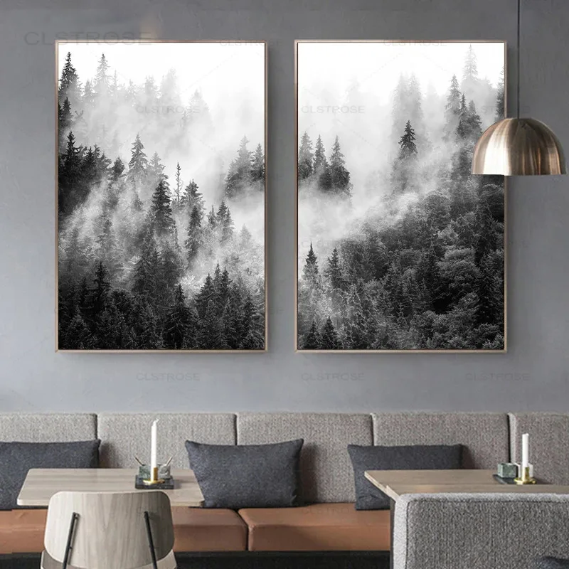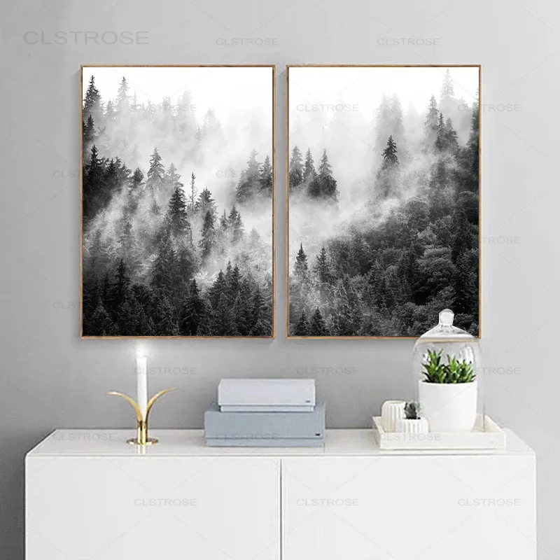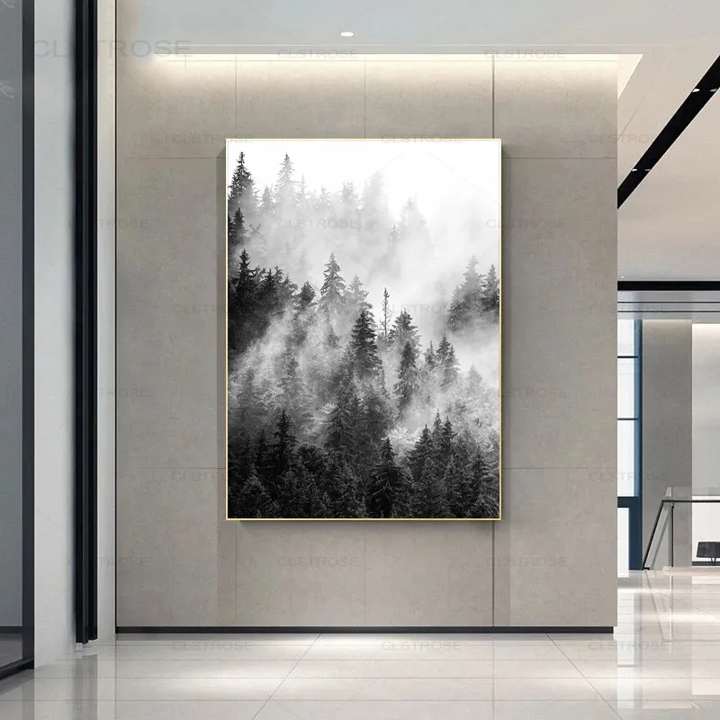Черно-белая Картина на холсте, с изображением природы