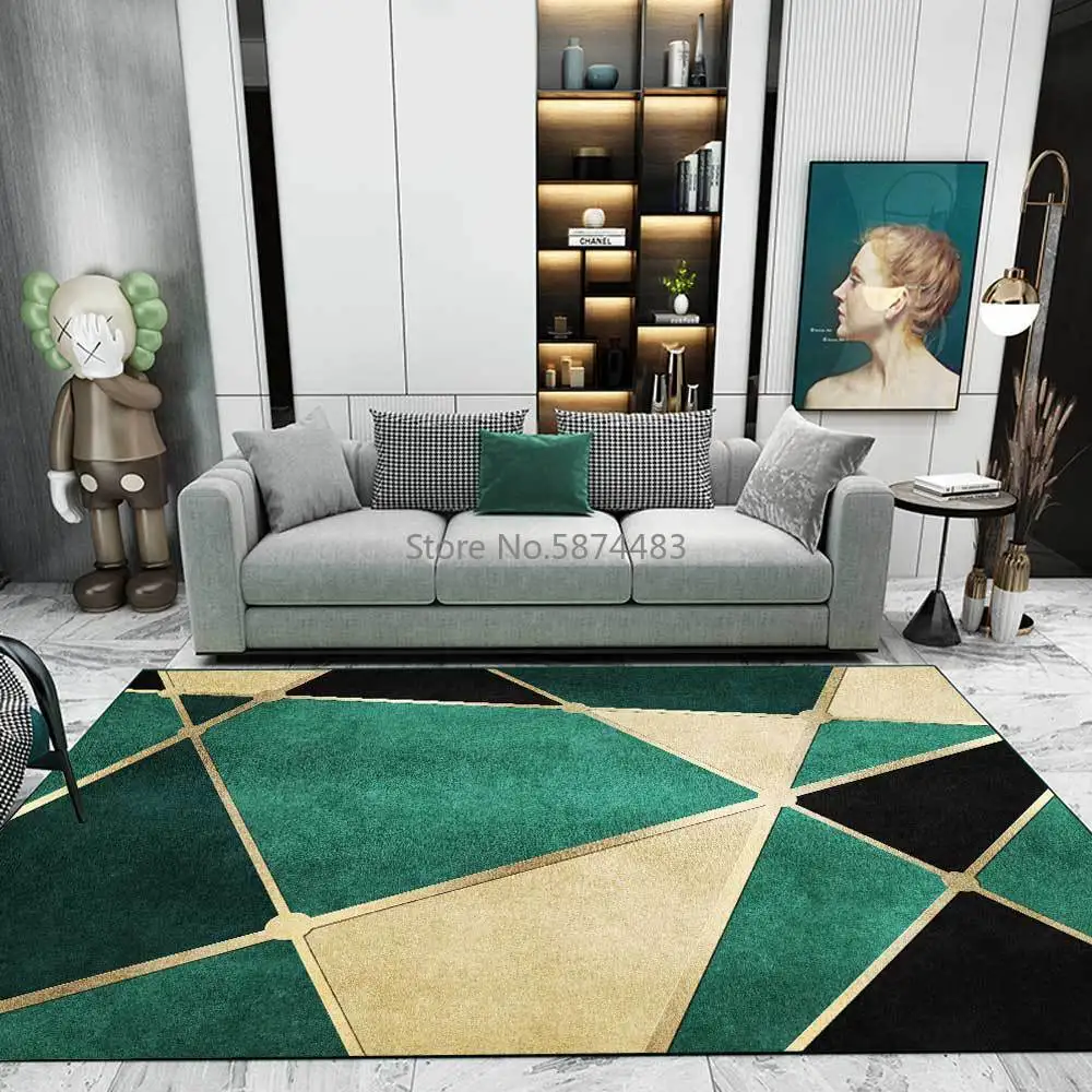 Современная мода зеленое золото с геометрическими фигурами, треугольниками, шить гостиная прикроватный коврик для спальни коврики