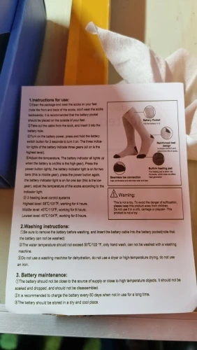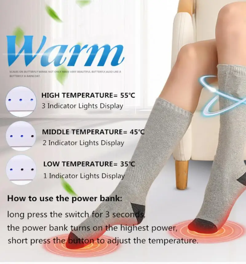 -Нагревательный элемент: нагревательный элемент находится внутри носка. Специально разработанный карман банка питания безопасен и прост в переноске.