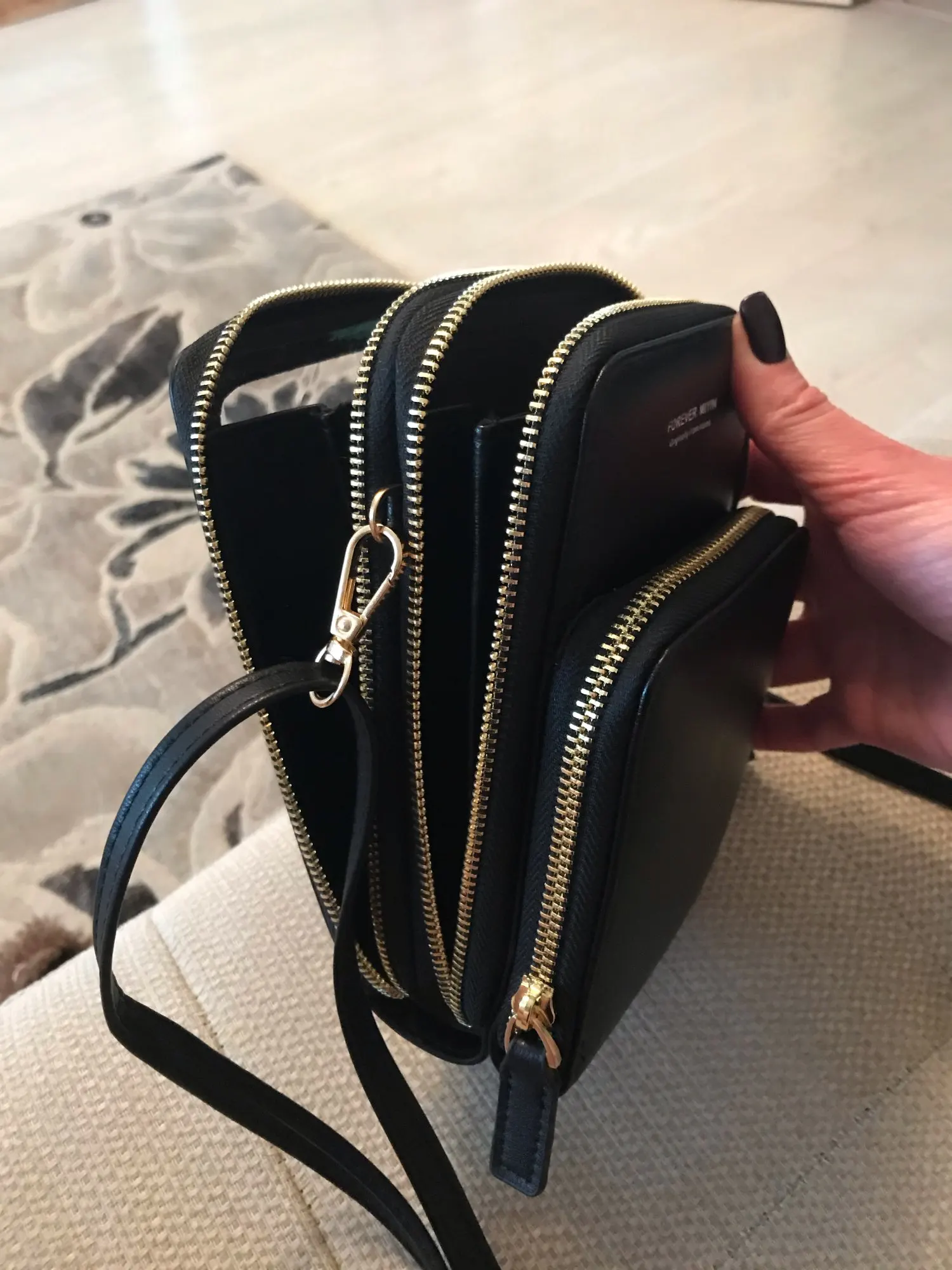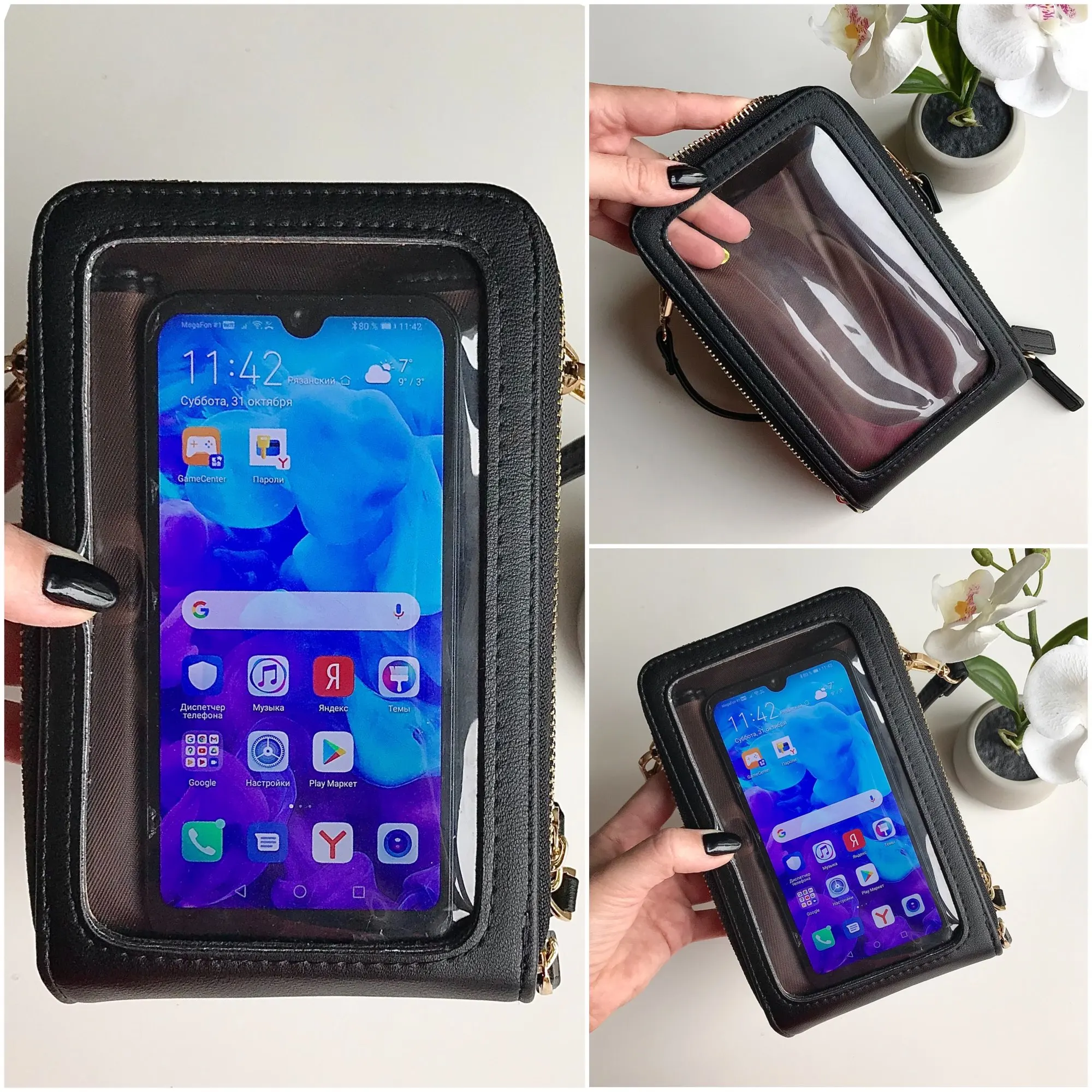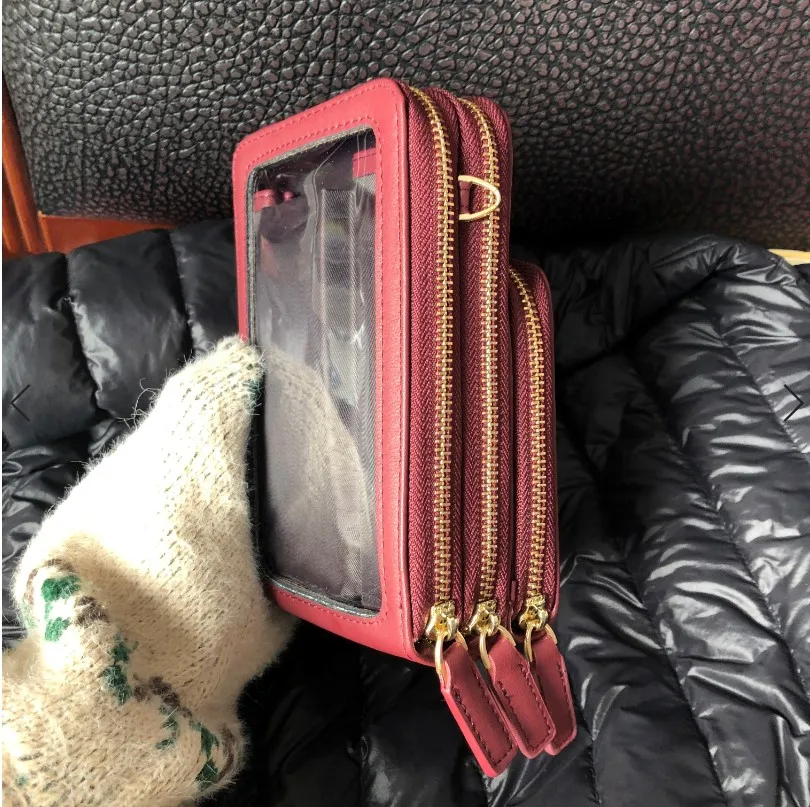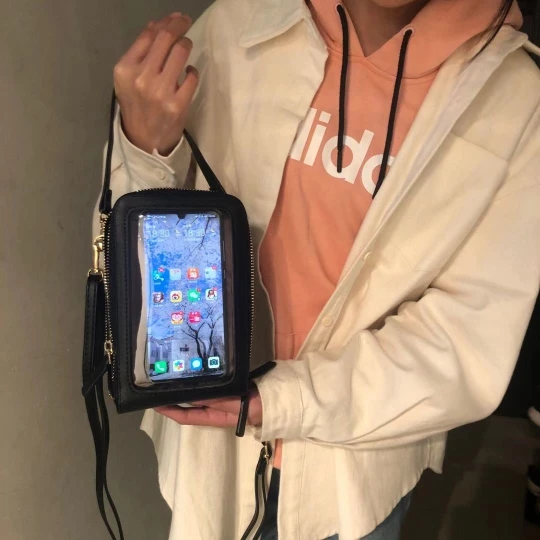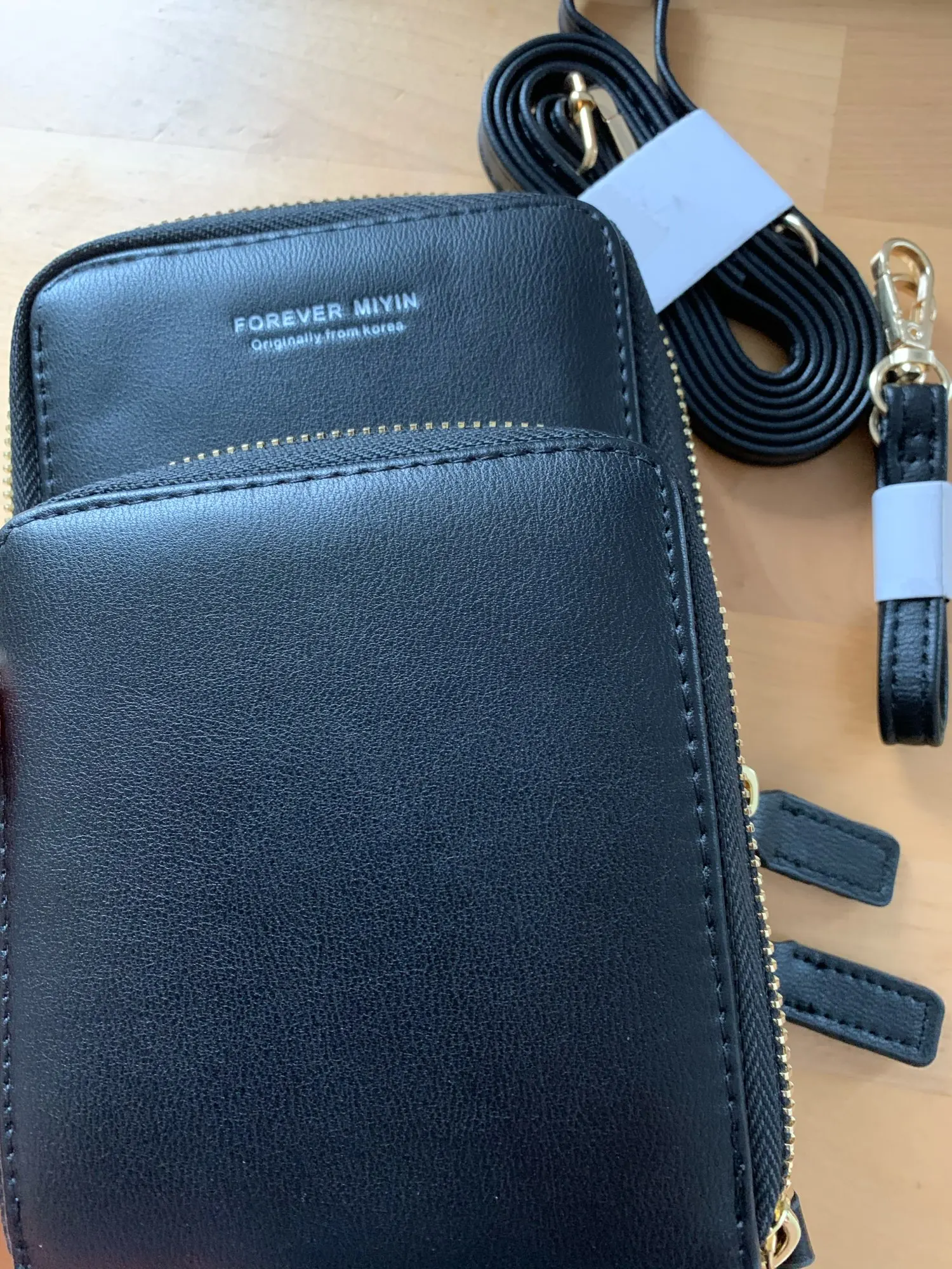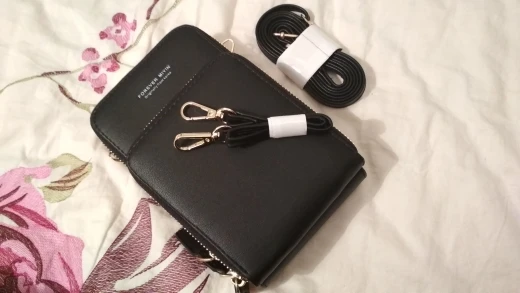 супербыстрая доставка, много отделений, длинный и короткий ремешок,через прозрачную стенку телефон реагирует.
