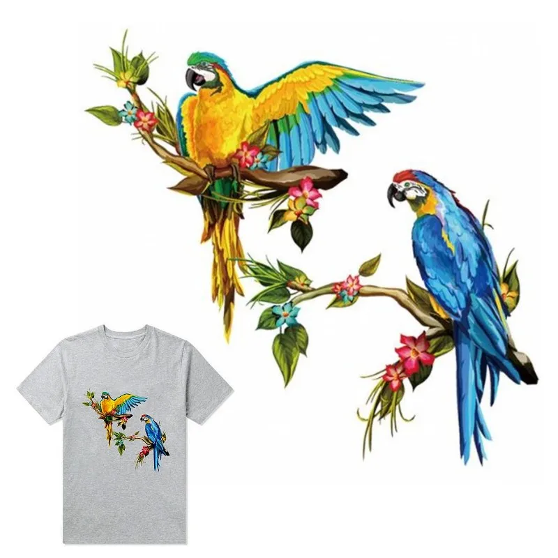 Термонаклейки с мультяшным попугаем, животными, термонаклейки для самостоятельного изготовления одежды, футболок, термонаклейки, декоративная печать