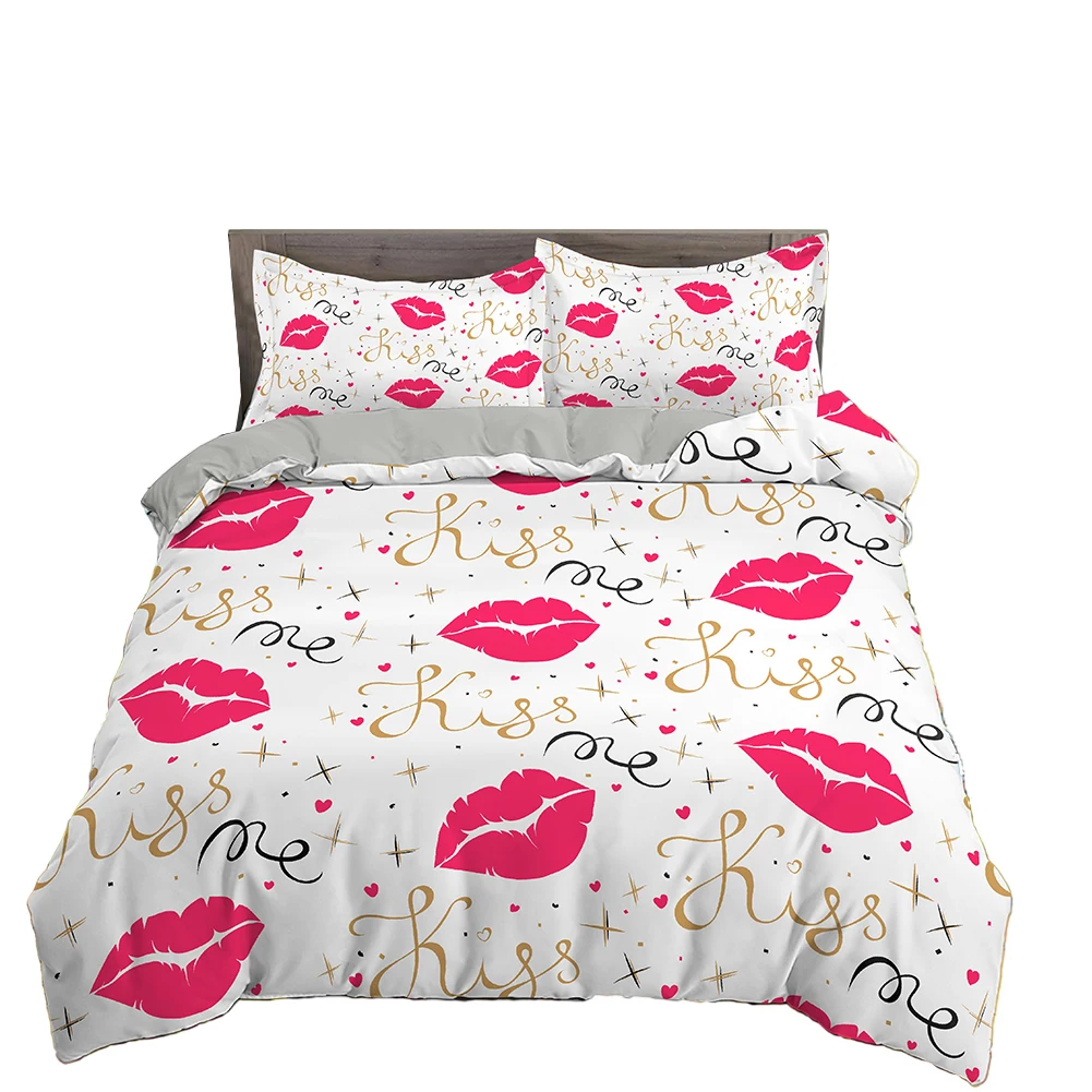 Набор пододеяльников с красными губами, набор постельного белья с с...