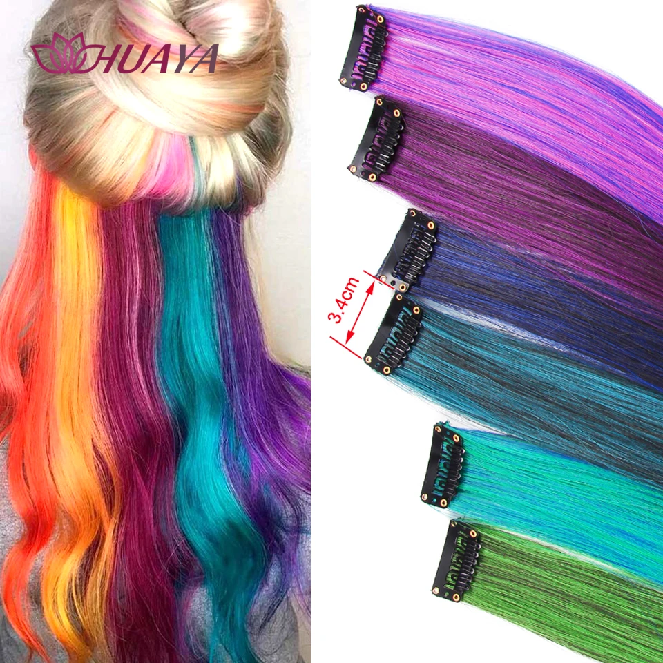 Шиньон для волос HUAYA, длинный, прямой, с эффектом омбре, с зажимом, для девушек, для любителей спорта