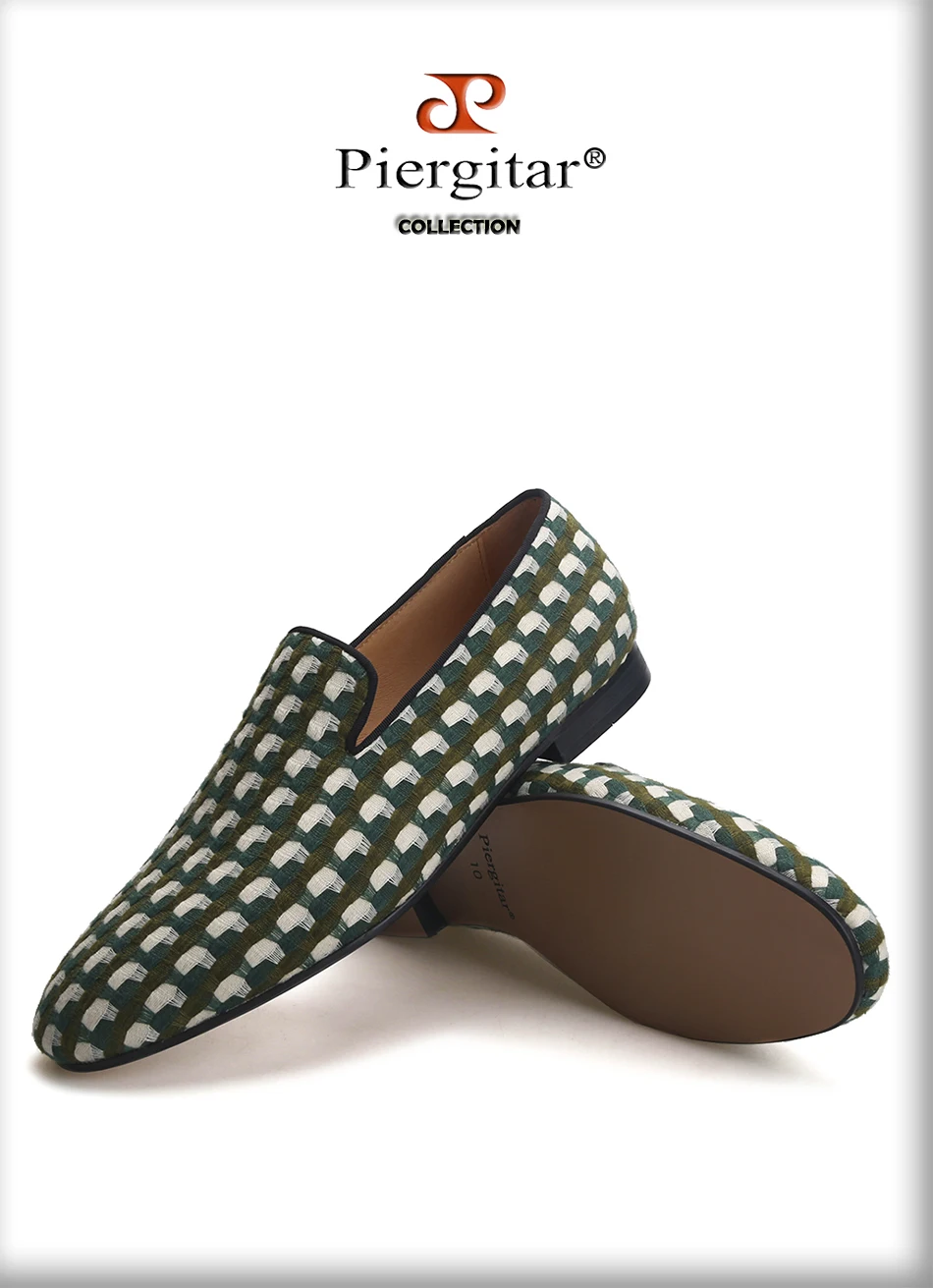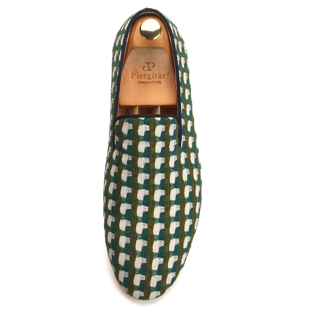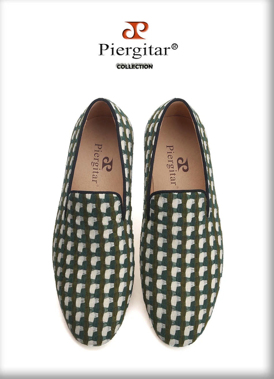 Piergitar зеленые хлопковые мужские курительные тапочки для выпускного и банкета ручной работы мужские лоферы большого размера Артикул 139847