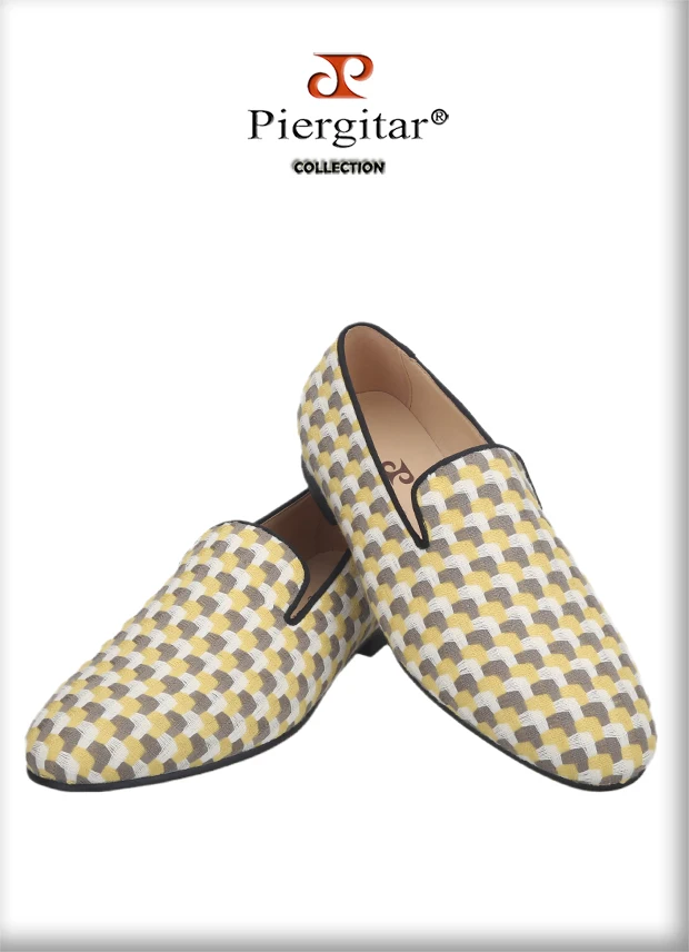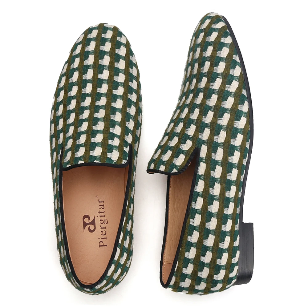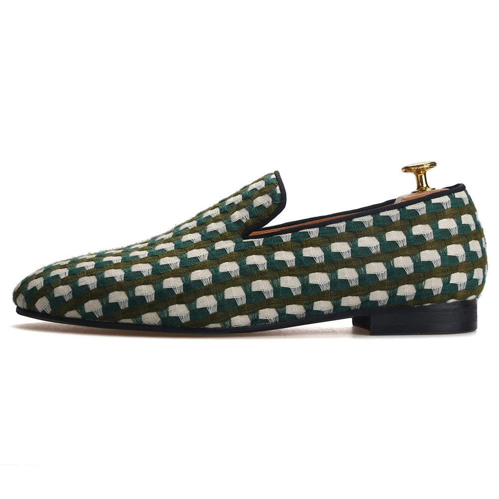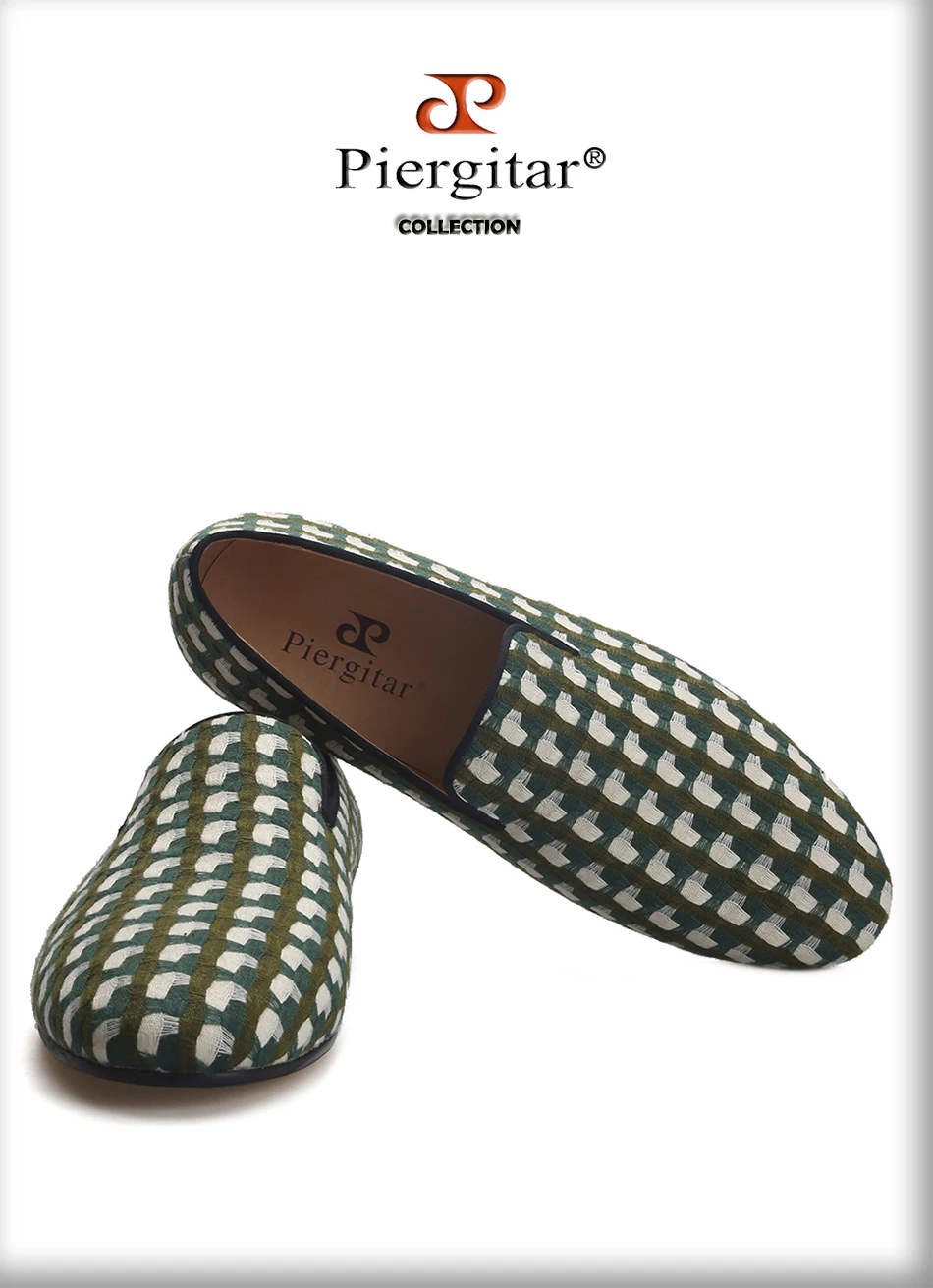 Piergitar зеленые хлопковые мужские курительные тапочки для выпускного и банкета ручной работы мужские лоферы большого размера Артикул 139847