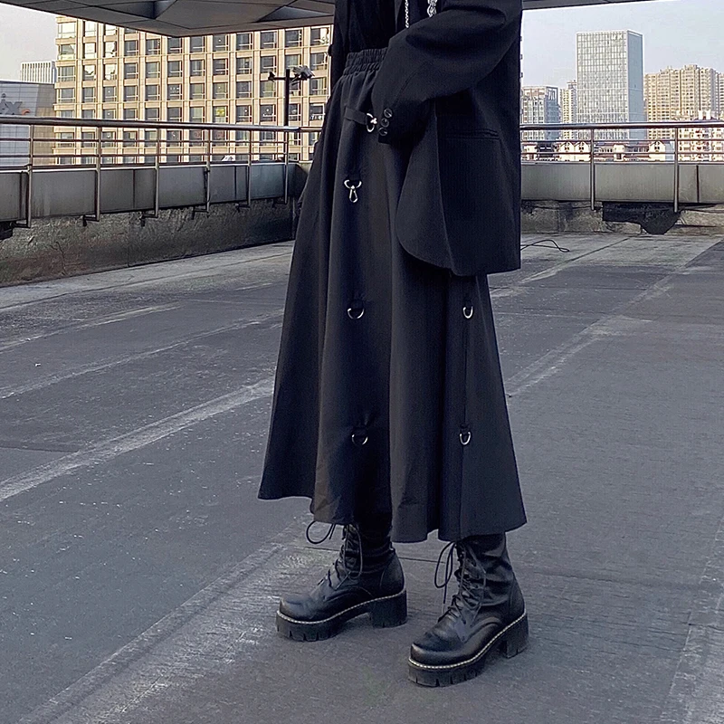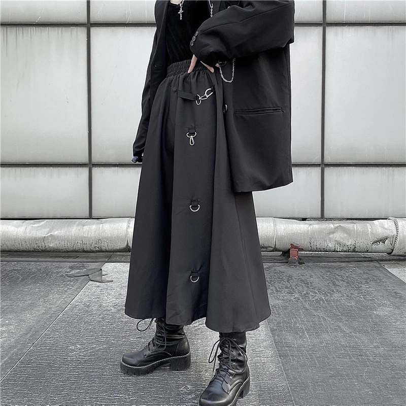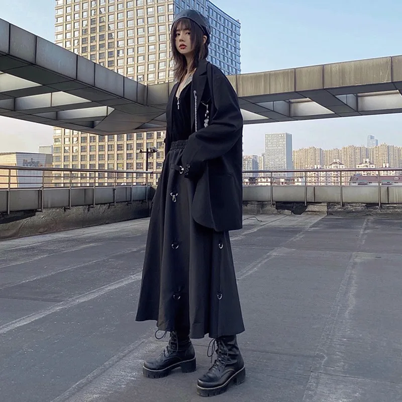 Корейская уличная одежда Ulzzang с высокой талией, повседневная женская юбка в готическом стиле, длинная свободная черная юбка в стиле хип-хоп, панк