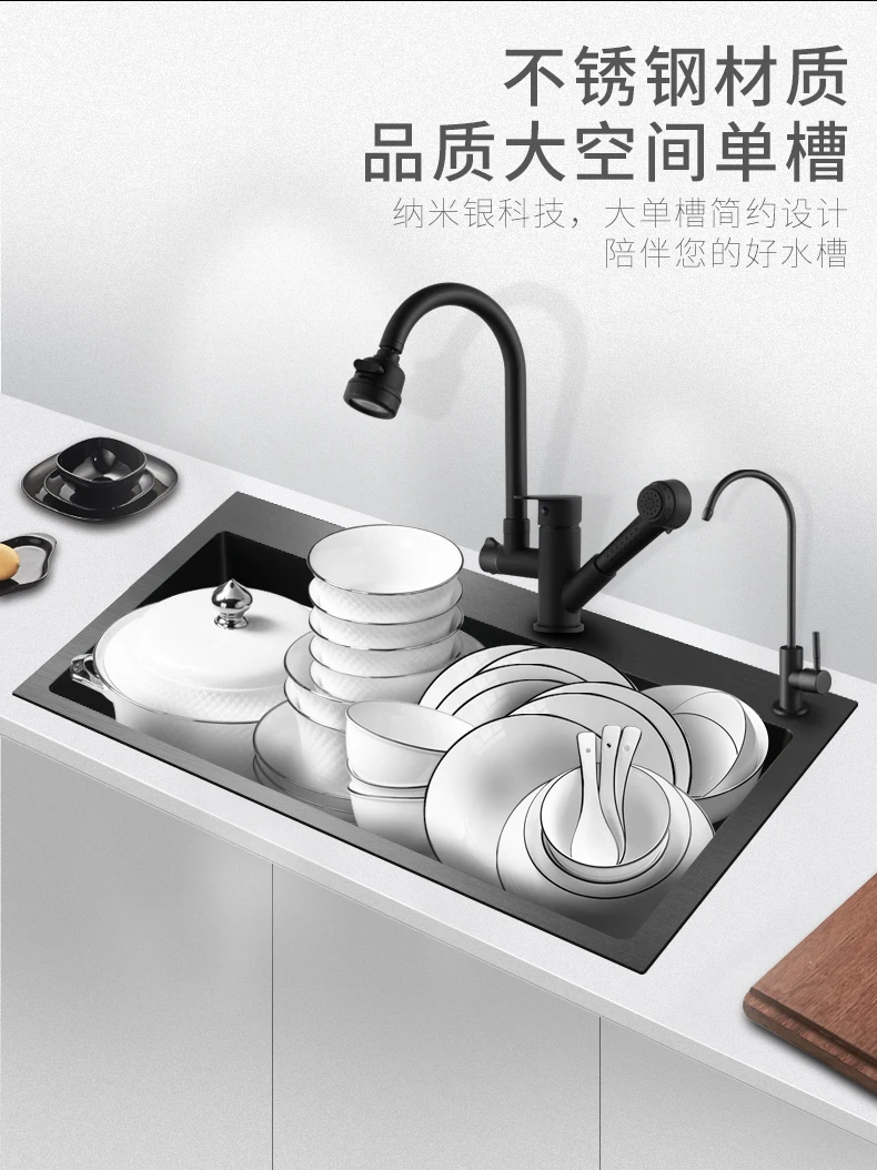 Темно-серая кухонная раковина из нержавеющей стали вверх или встраиваемая раковина для мытья овощей ручной работы