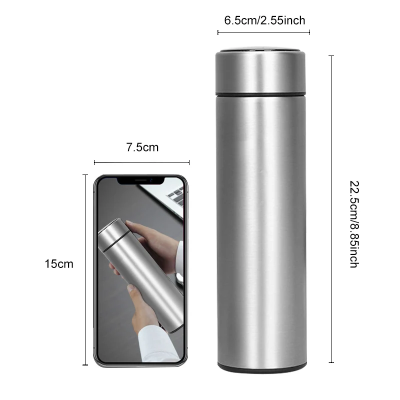Термос с ЖК-дисплеем 500 мл, умные термосы из нержавеющей стали с вакуумной изоляцией, герметичные, сохраняющие тепло и холод, для спортзала