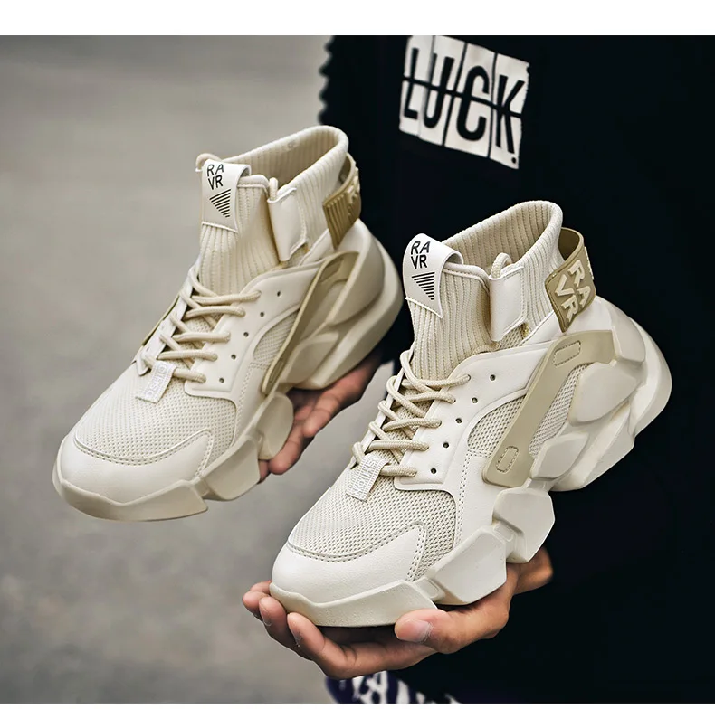Осенние новые высокие Бежевые мужские кроссовки, массивная мужская ...