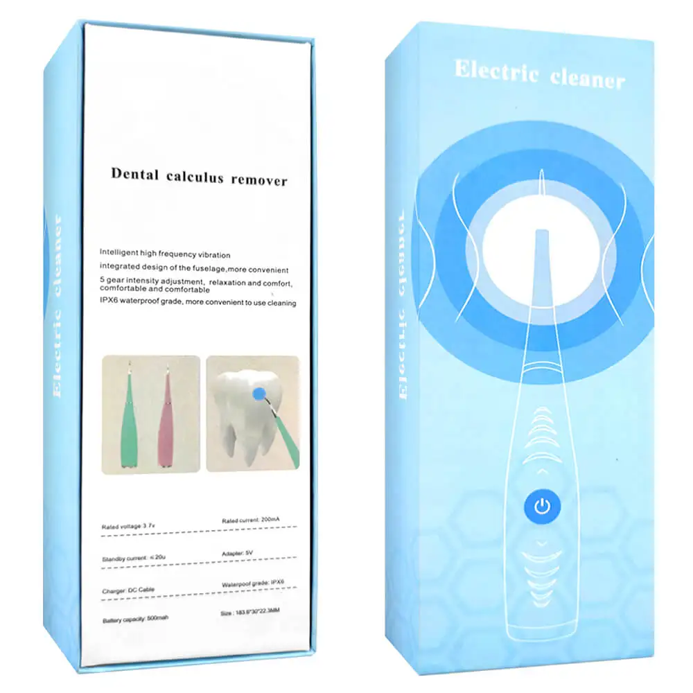 Особенности: 1) превосходное качество. Наконечник скалера изготовлен из легированной стали медицинского класса, прочный, безопасный, гигиеничный, не ржавеет и не токсичен. Ручка изготовлена из противоскользящего силикона, удобна в удержании. 2) многофункциональный. Этот прибор для удаления зубного налета предназначен для домашнего использования. Вы всегда видите клетку, бактерии созданы на ваших зубах, которые трудно удалить даже зубной щеткой, зубной нитью и зубной лентой. Этот стоматологический инструмент специально подходит для удаления тяжелых пятен, татарных пятен, бактерий и мусора с зубов и жвачки, помогает ухаживать за зубами и получить сверкающую улыбку. 3) поводок-рулетка 5 Частота туристического снаряжения. Вы можете отрегулировать Частотный уровень в соответствии с вашими потребностями. 4) Водонепроницаемость. Класс водонепроницаемости IPX6, весь корпус водонепроницаемый, удобен для чистки. 5) Интуитивно понятный дизайн. Управление одной кнопкой, интегрированный дизайн, удобный способ зарядки и длительное время ожидания сочетаются, позволяют использовать этот стоматологический инструмент с легкостью. Спецификация: Материал: легированная сталь + силикон Номинальное напряжение: 3,7 в Номинальный ток: 200 мА Класс водонепроницаемости: IPX6 Напряжение при зарядке: 5 В Емкость аккумулятора: 300 мАч Шум двигателя: ≤ 60 дБ Вес: 74 г Размер: 19,5*2,5 см (Д * Ш)