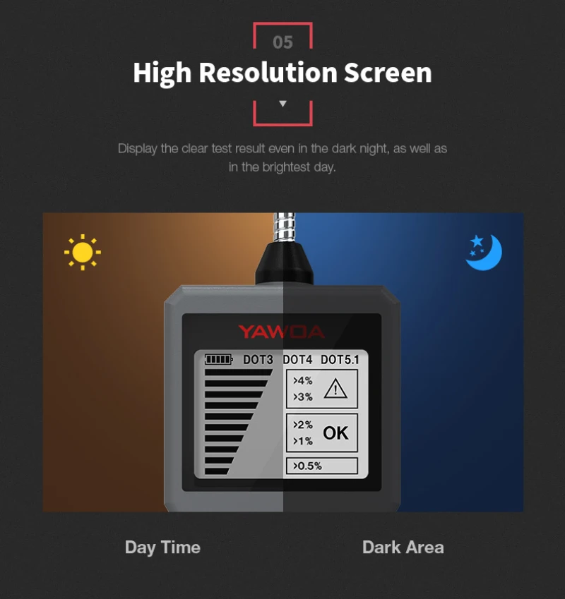 ЖК-дисплей показывает результат тестирования, чтобы сказать вам качество тормозной жидкости.