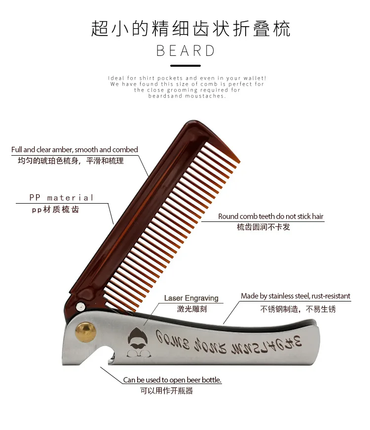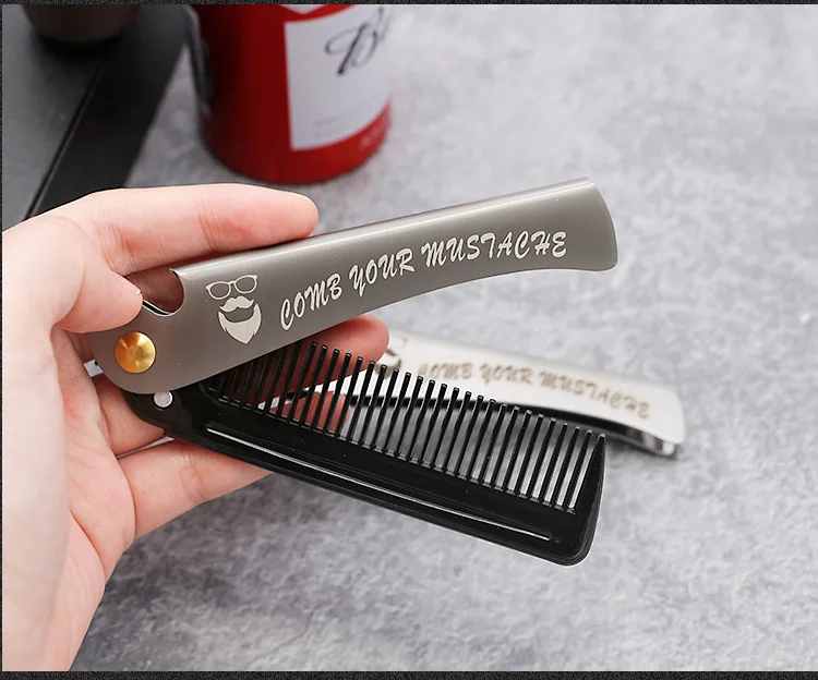 Расческа Мужская Складная карманная с металлической ручкой, для распутывания зубов, 1 шт., нож с расческой форма