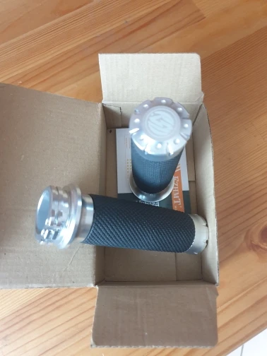 ну таки что я имею сказать по данным грипсам! Сделаны хорошо, обработка алюминия хорошая, резиновые вставки тоже не плохи на ощупь приятны. Единственный недостаток диаметр канавы для фиксации в пульте ручки газа. диаметр у групсы 32.8мм диаметр отверстия моего пульта 31мм. Короч говоря отдам токарю проточить конавку по глубже, запас в металле есть! Ездить будет.