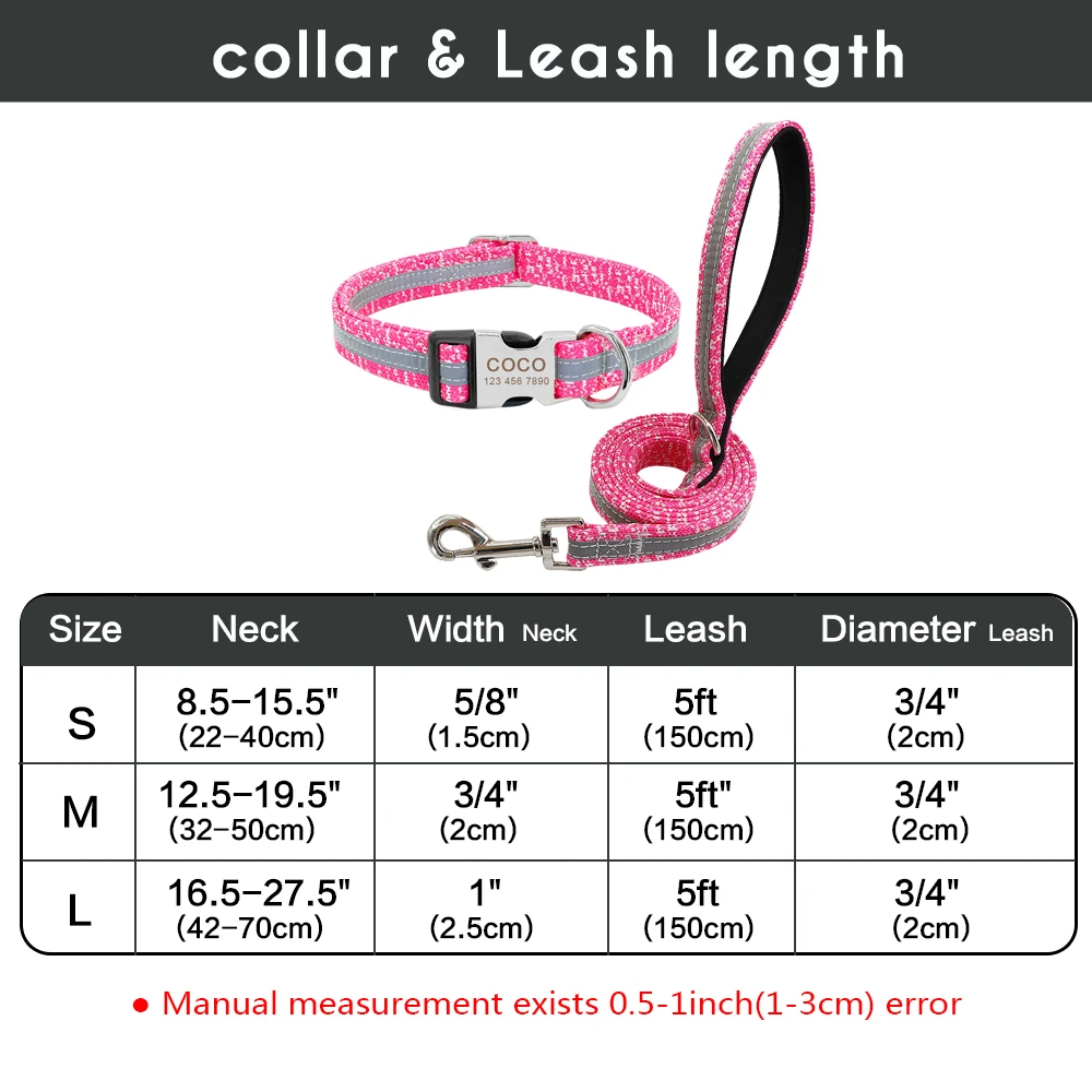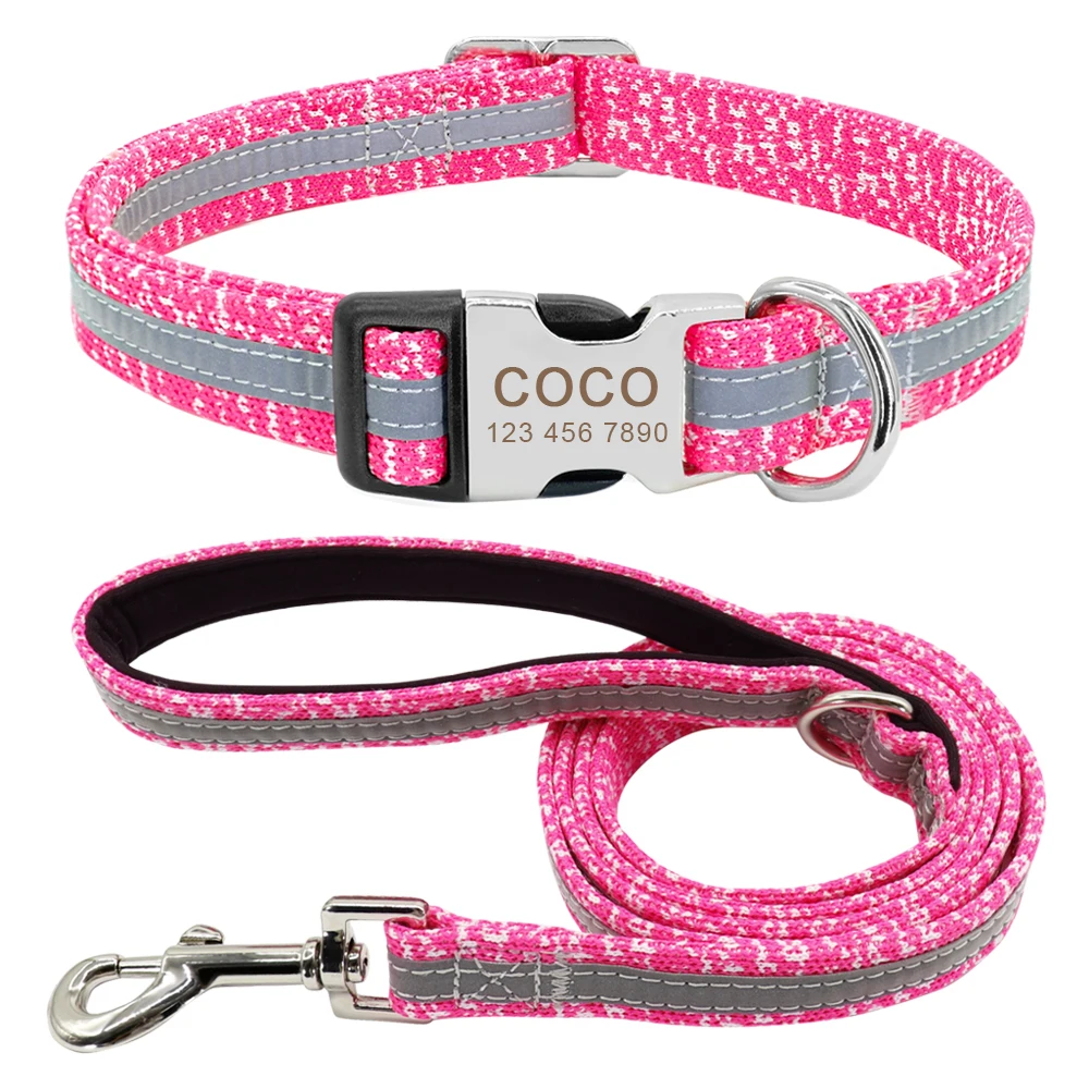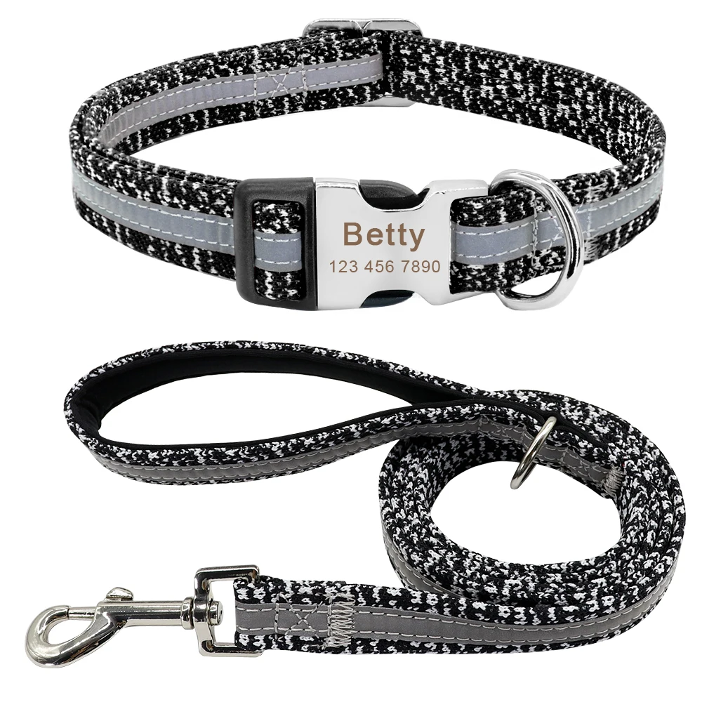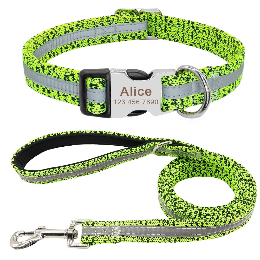 Светоотражающий персонализированный ошейник и поводок для собак, индивидуальная идентификационная бирка для собак, ошейники с бесплатной гравировкой для маленьких, средних и больших собак