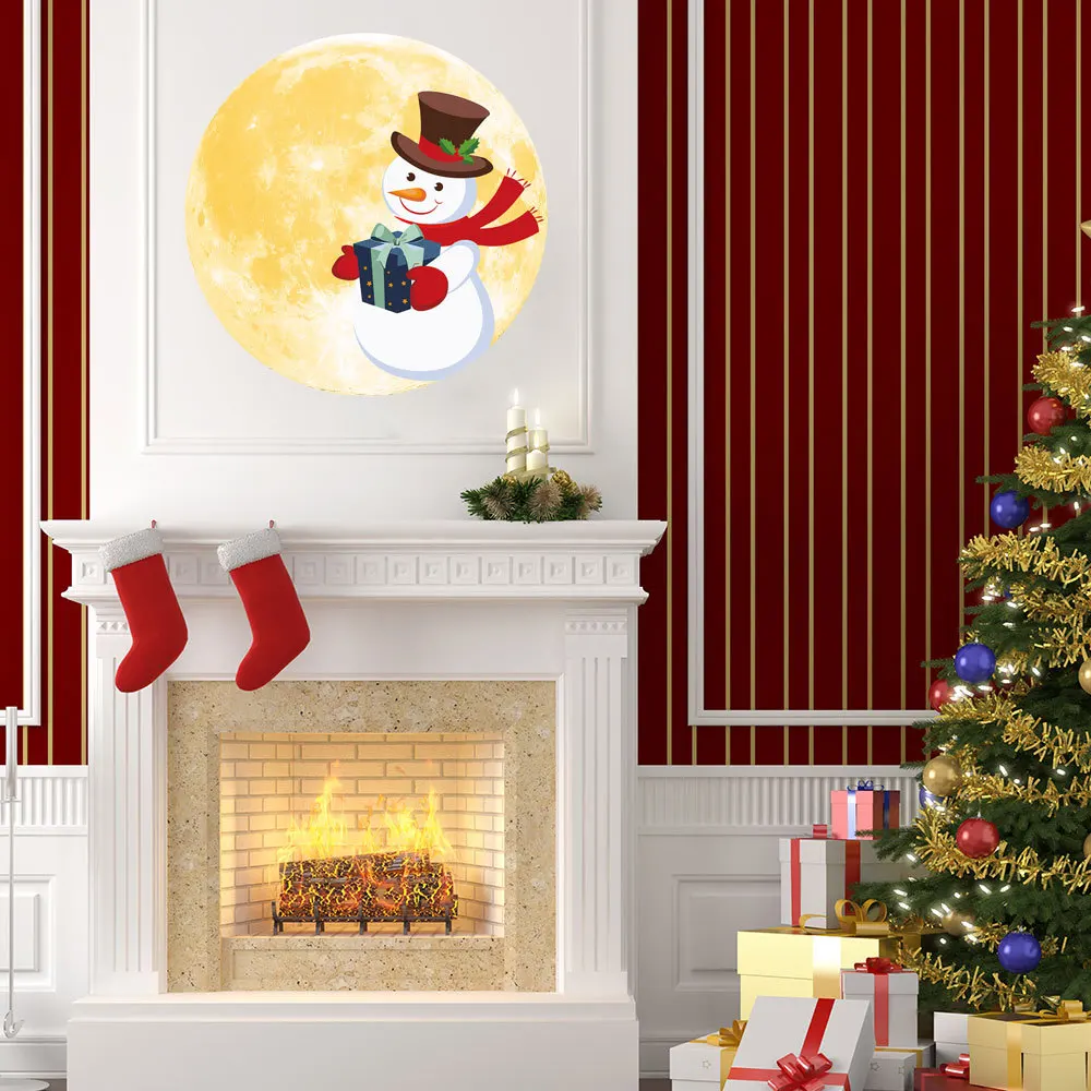 30 см Световой Луна наклейки на стену с рождественским снеговиком светится в темноте наклейка на стену для детской комнаты гостиная, Спальня украшение дома