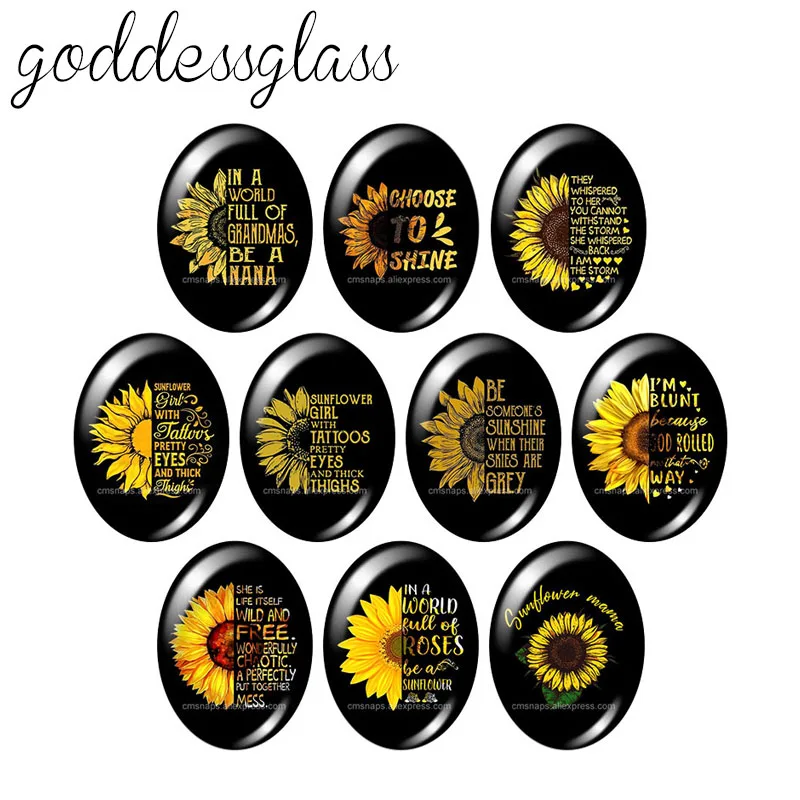 Новые татуировки в виде букв подсолнуха, 10 шт., смешанные, 13x12 мм18x25 мм30x40 мм, Овальные, фото, стекло, кабошон, демонстрация, плоская задняя часть