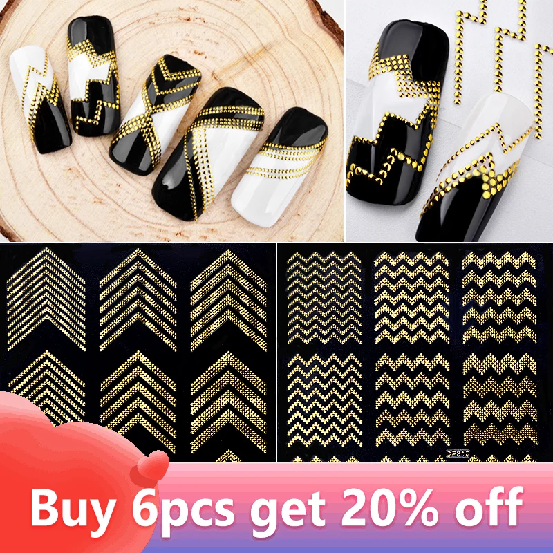 3D наклейки для ногтей, s полоски, волнистая линия, золотые наклейк...