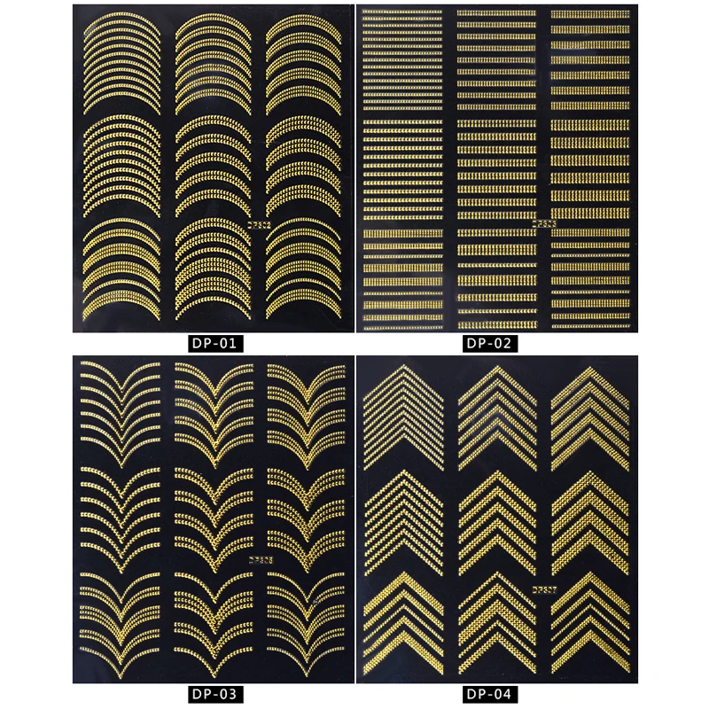 16 вариантов Стикеры для ногтей с зеркальным золотым ривертом, мета...