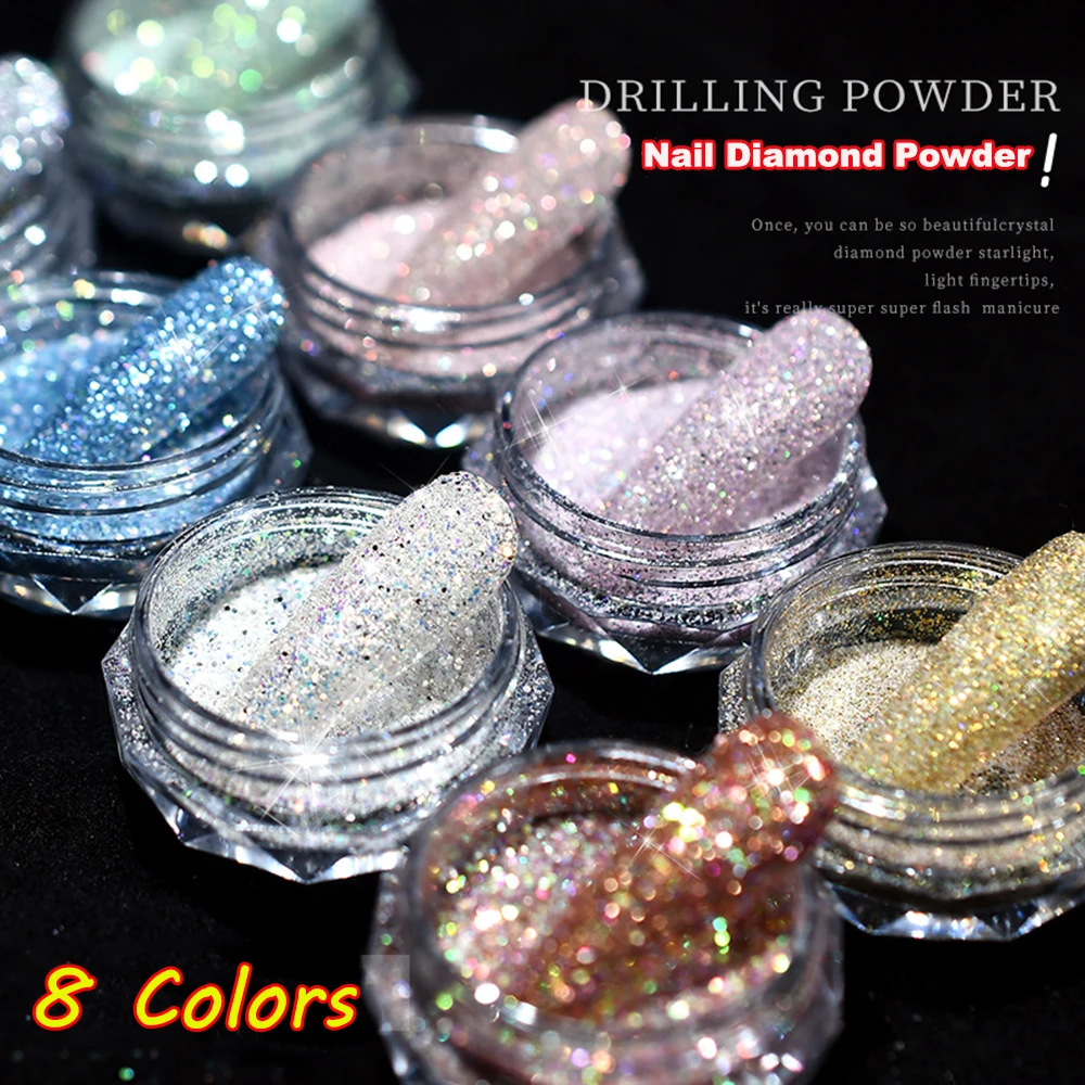 1 коробка, украшенные сверкающим бриллиантом для ногтей с блестящим напылением лазерный отражатель с серебряным покрытием мелкодисперсной пыли Блестящий лак для ногтей пигмент с голографическим эффектом инструменты для украшения ногтей