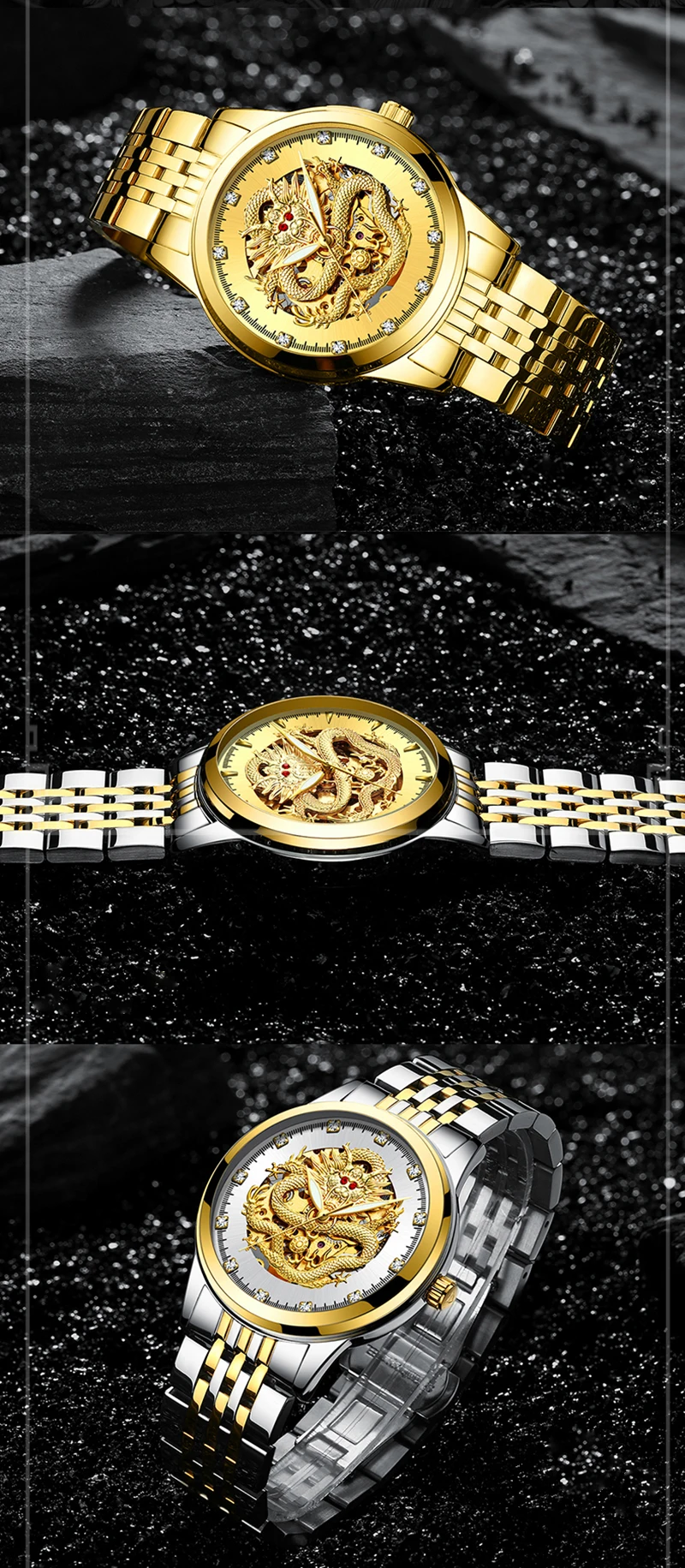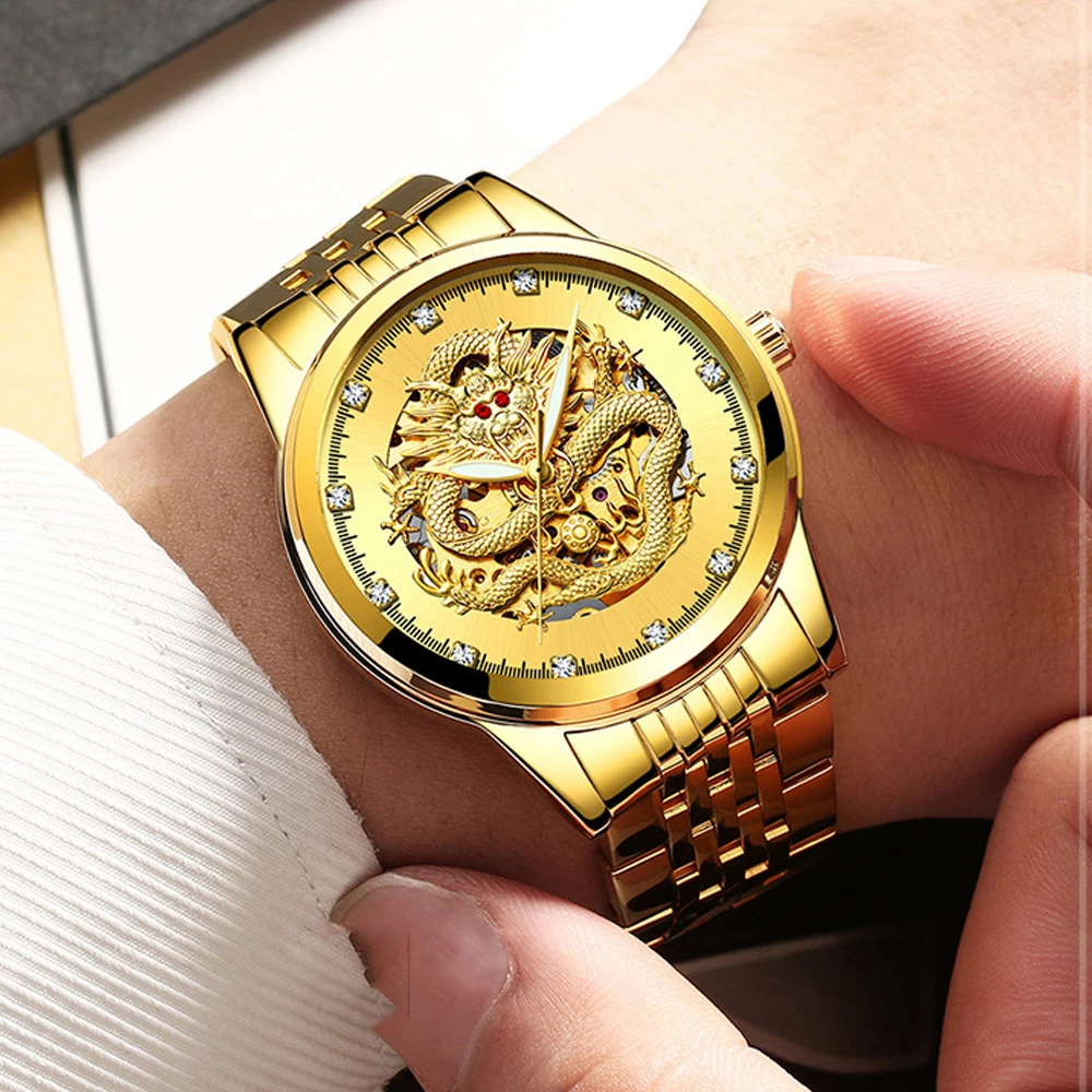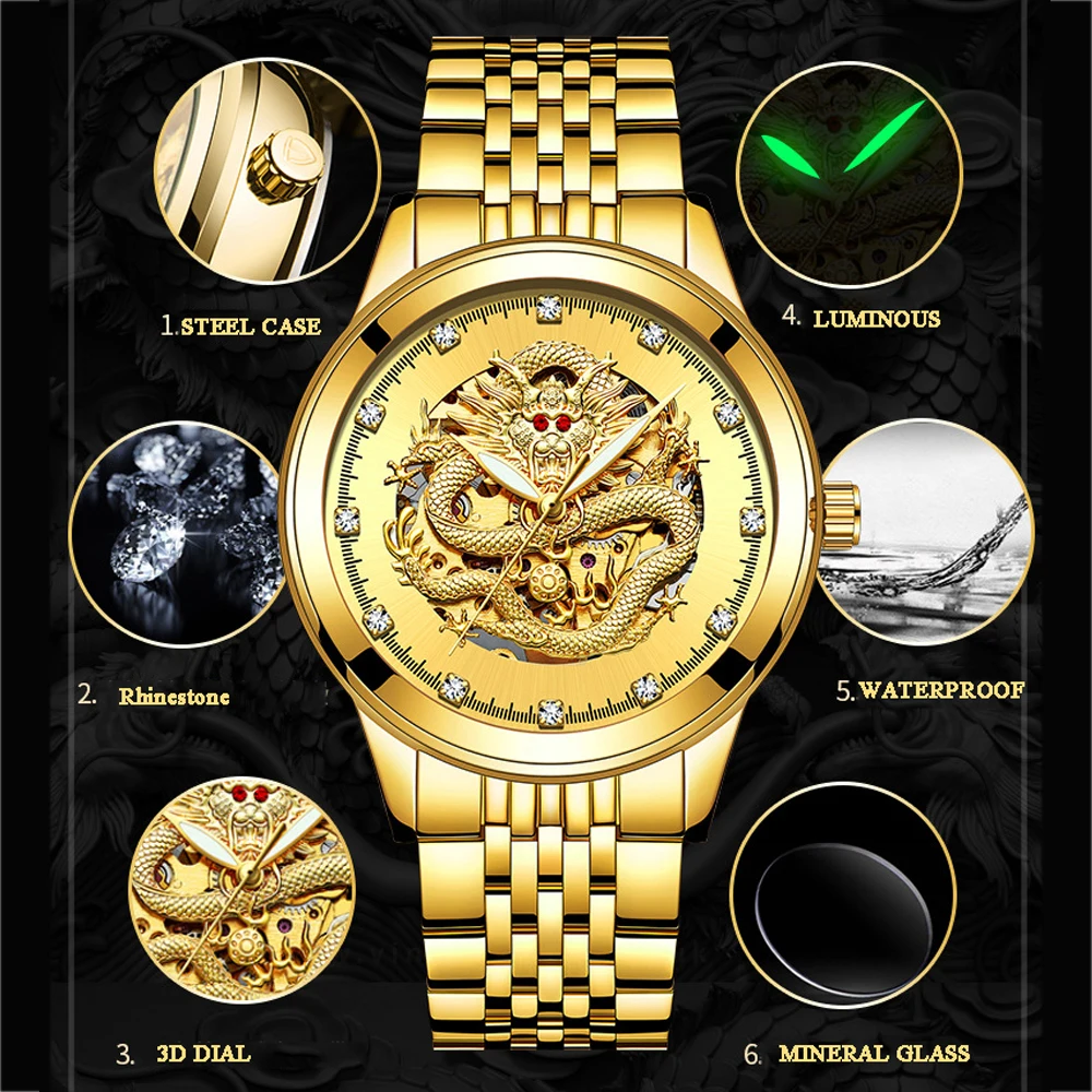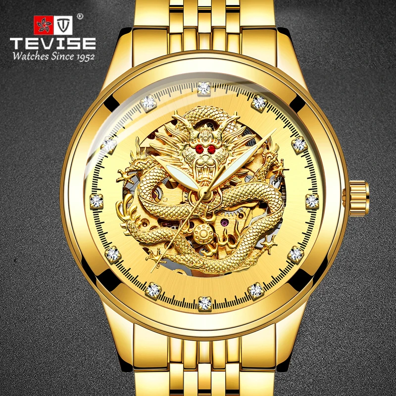 Часы мужские механические TEVISE 9006B, с автоподзаводом, с 3D драконом