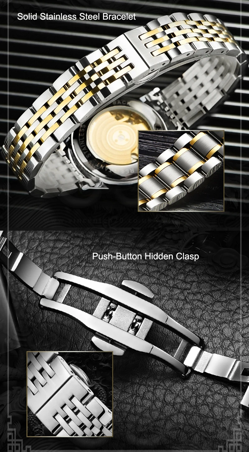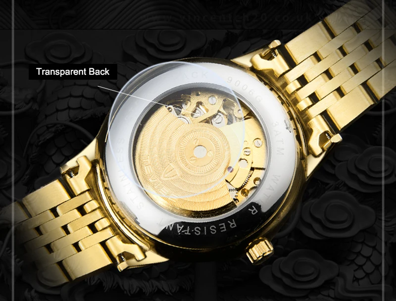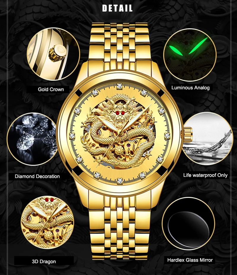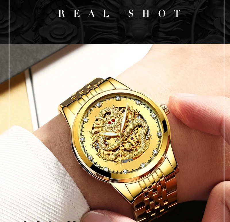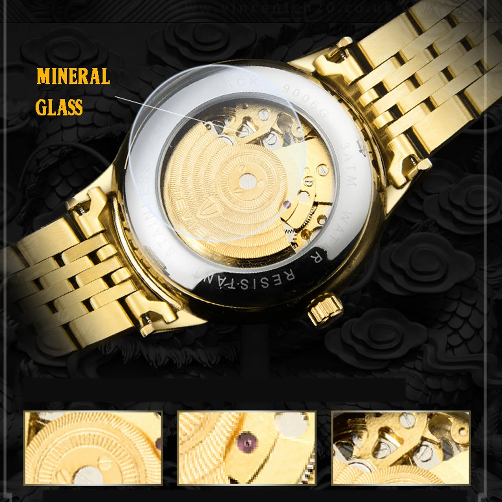 Часы мужские механические TEVISE 9006B, с автоподзаводом, с 3D драконом