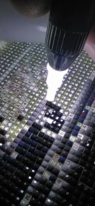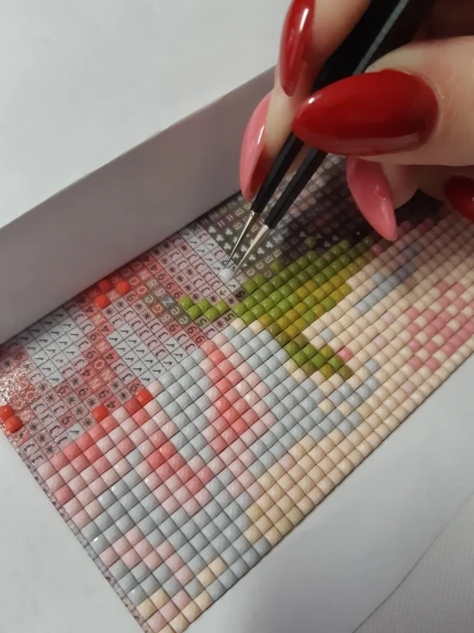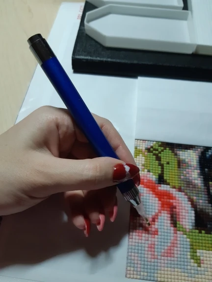 Очень ждала этот инструмент, чтобы попробовать его на новой картине. Двоякие впечатления от использования: удобно, что есть подсветка, 6 страз за раз берет; неудобно держать и при небольшом надавливании гаснет лампочка. В общем, кто выкладывает много картин, то инструмент будет в помощь!
