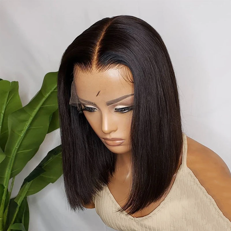 Короткий парик из человеческих волос на сетке спереди, прямые парики с T-образной частью, бразильский парик без повреждений, предварительно выщипанный парик 13x1 на сетке спереди, естественный цвет 180%