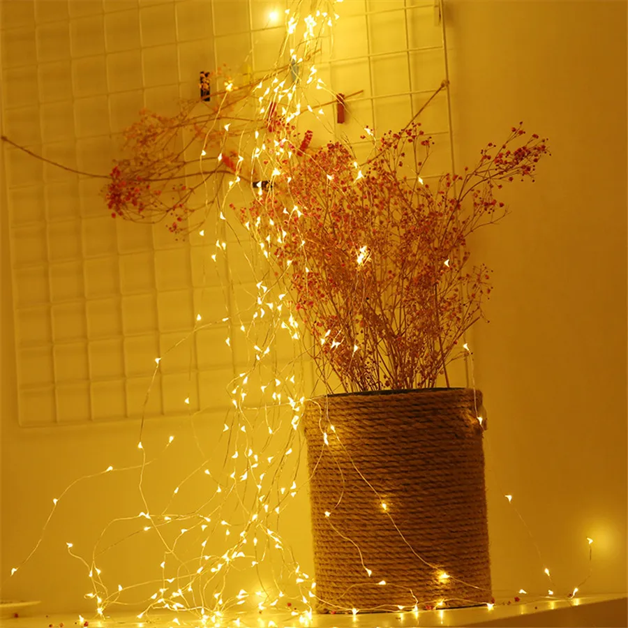 30 нитей 600 светодиодов мерцающий Сказочный светильник s Открытый водонепроницаемый водопад лоза ветка струнный Светильник Солнечный Chritmas медный провод Светильник s