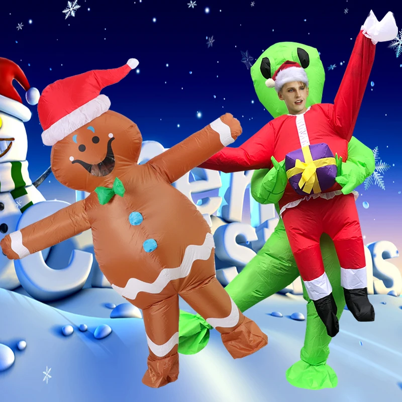 2020 новый дизайн рождественские костюмы, косплей надувной инопланетянин костюм для взрослых и детей милый Санта Клаус крупного плана одежда Вечерние платья