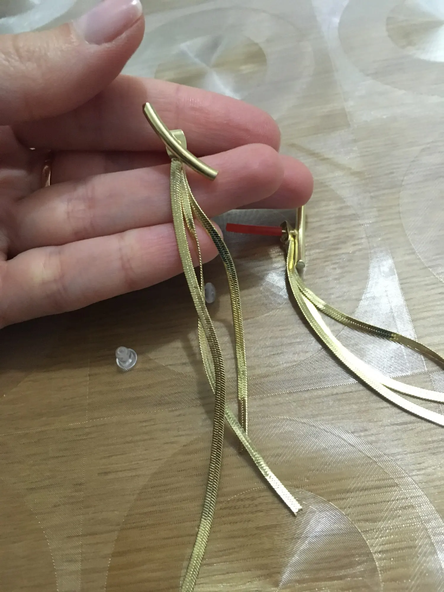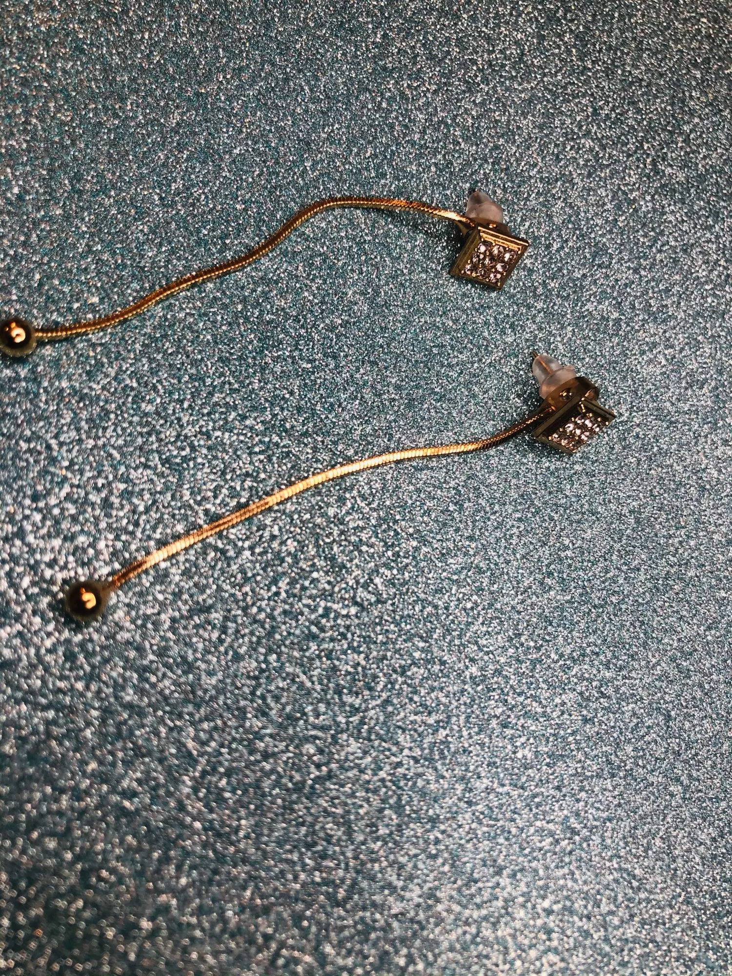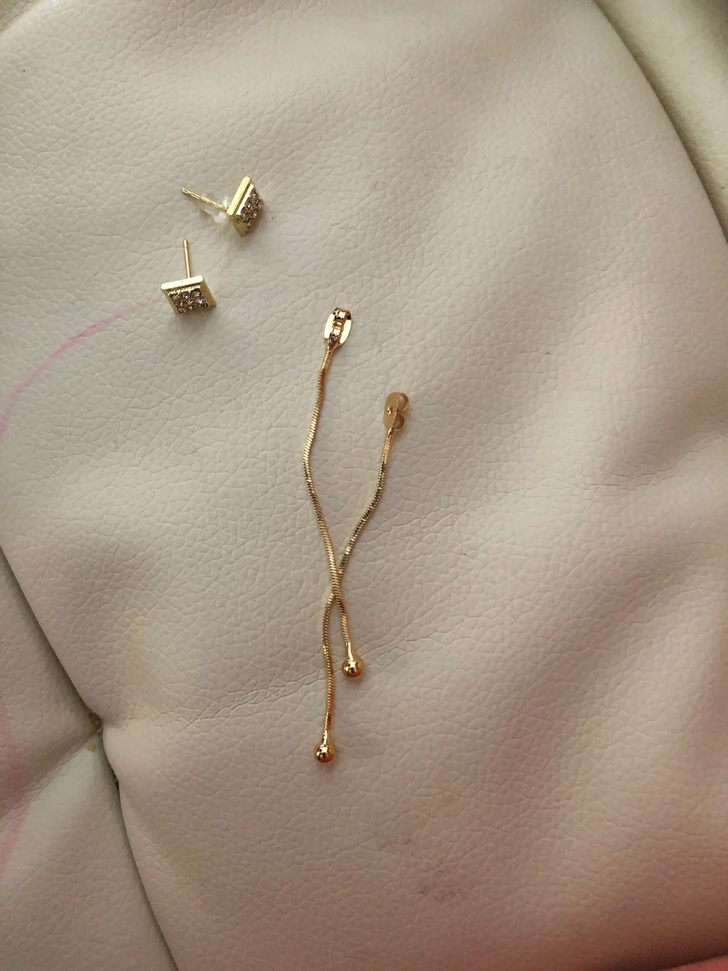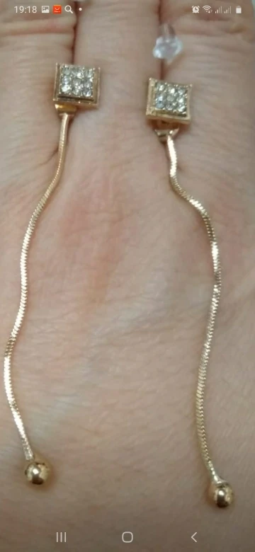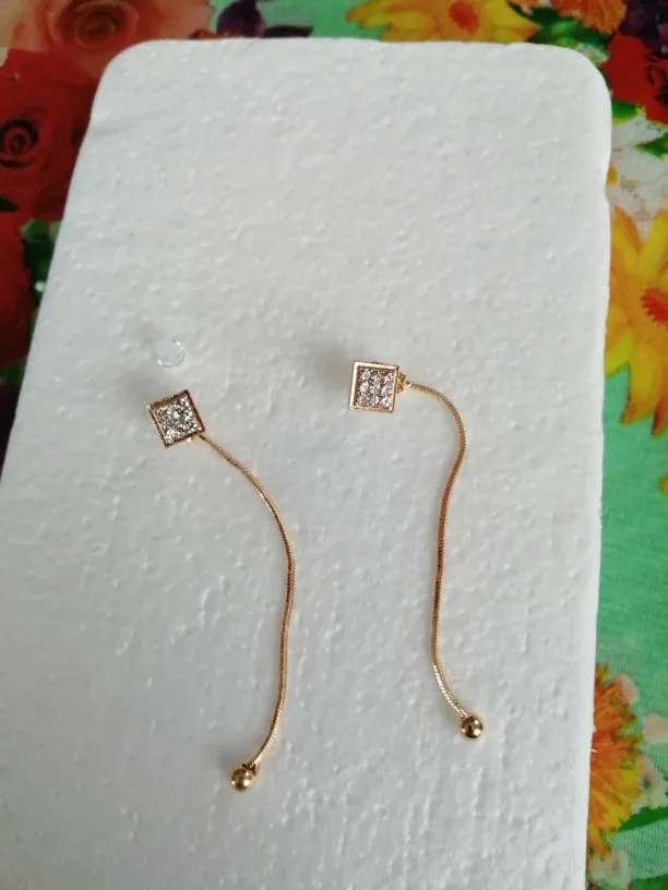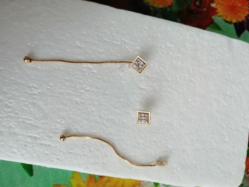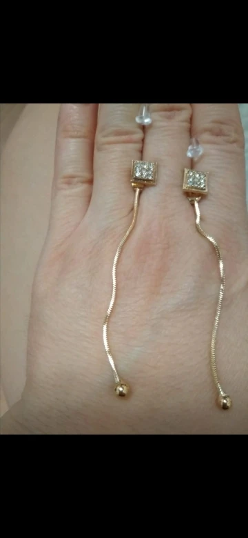 пришли быстро, серьги оказались трансформеры, их можно носить с цепочкой, она же является застёжкой , а можно просто квадратики, есть дополнительные силиконовые застёжки , цвет немного расстроил ,жёлтый ,не похоже на золото