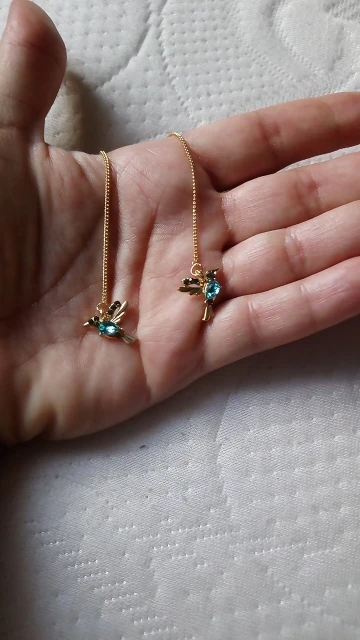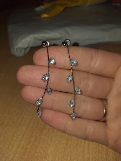 Серьги красивые,все как и описано.Единственное на 1й сережке не очень прочный замочек,добавляю силиконовую застежку(шли в комплекте).После недели лежки в шкатулке потемнели, отчистила зубной пастой.Пока ношу