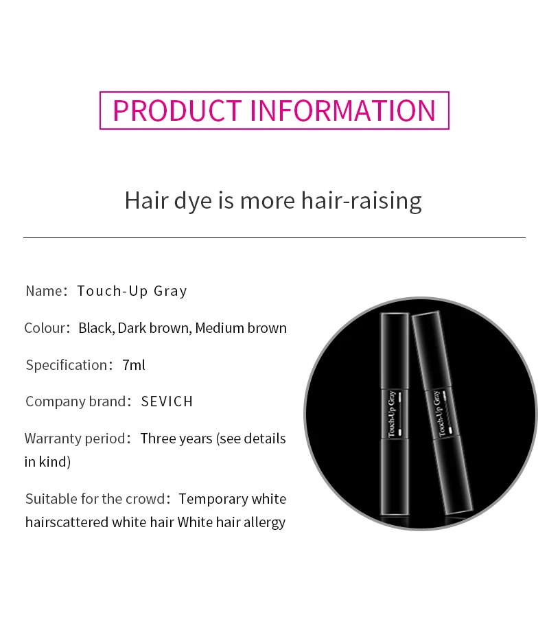 Краска для волос более поднимает волосы Наименование: серый цвет Цвет: черный, темно-коричневый, средний коричневый Спецификация: 7 мл Бренд comopany: sevich Гарантийный срок: 3 года Подходящая толпа: временные белые волосы, гипоаллергенные белые волосы