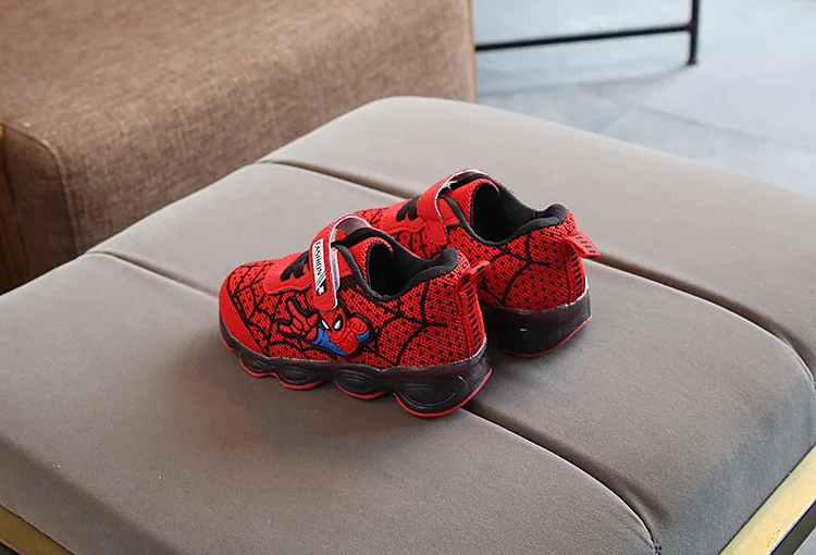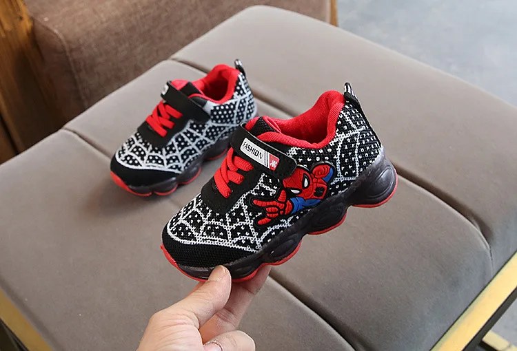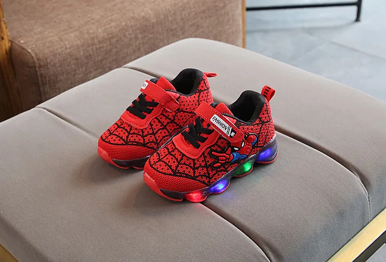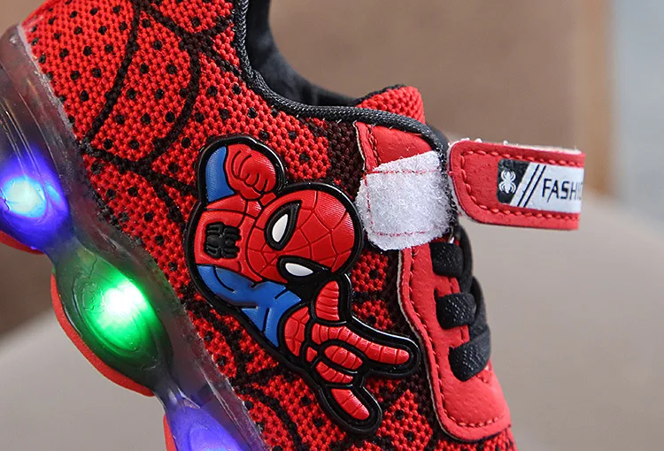 Детские кроссовки, светильник кие, дышащие, Нескользящие, спортивная обувь для мальчиков, Человек-паук, LED