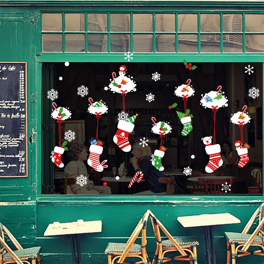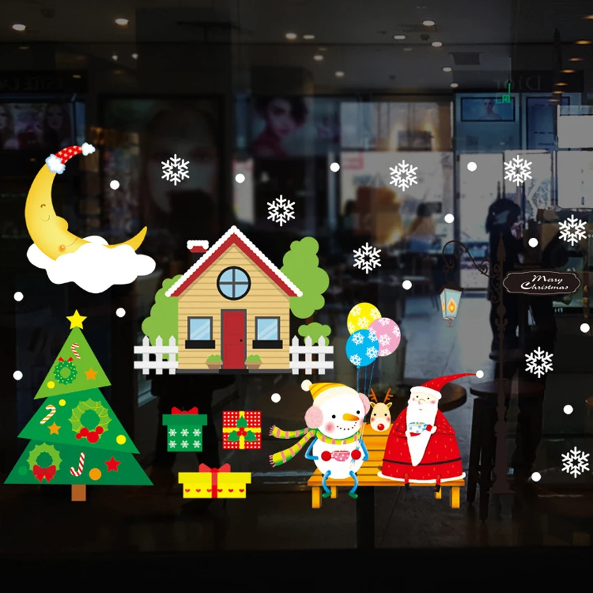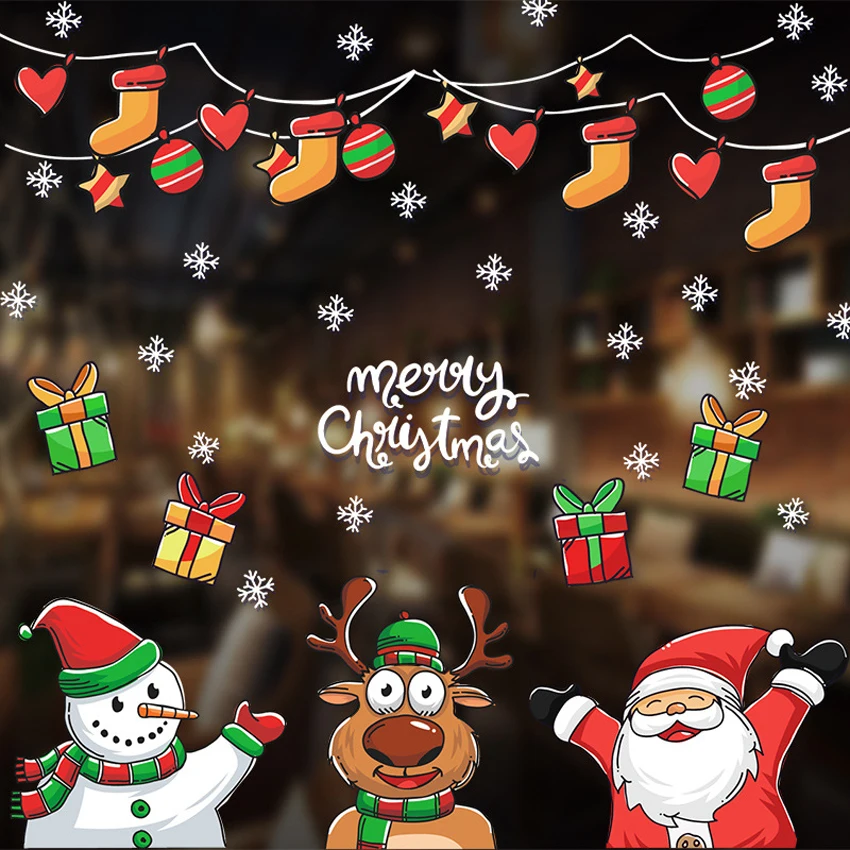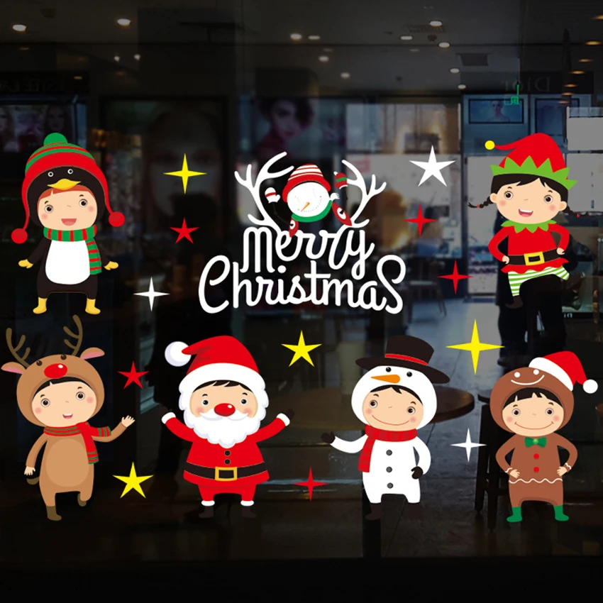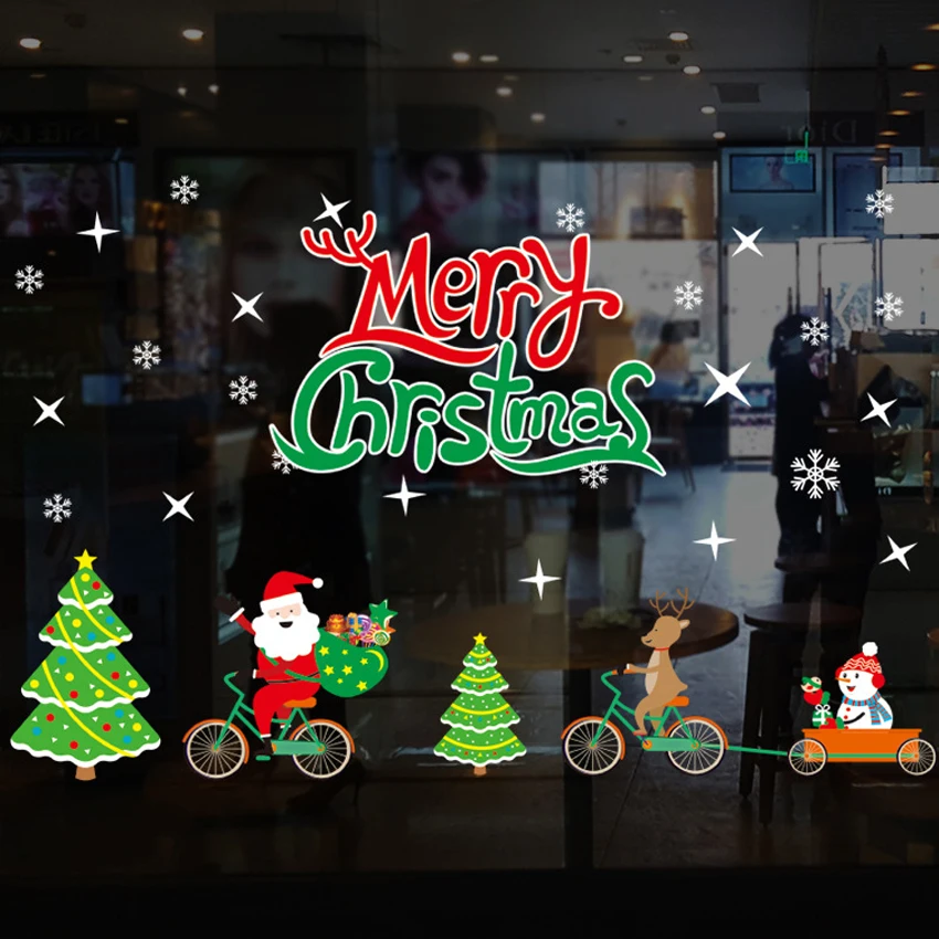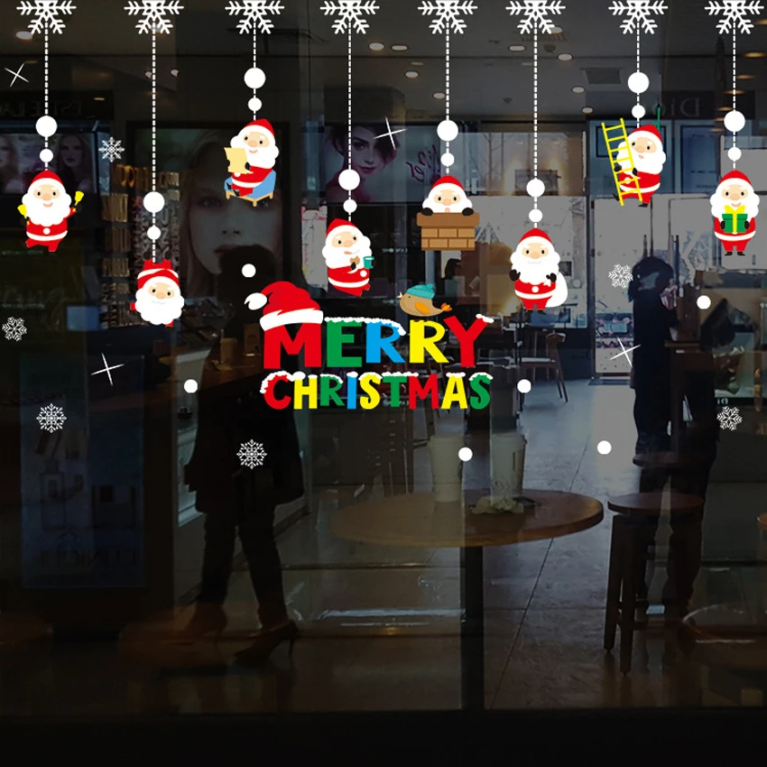 Рождественские наклейки на окна с дедом морозом, украшения на стену, Рождественский кулон, с Рождеством для домашнего декора, новогодние наклейки 2022