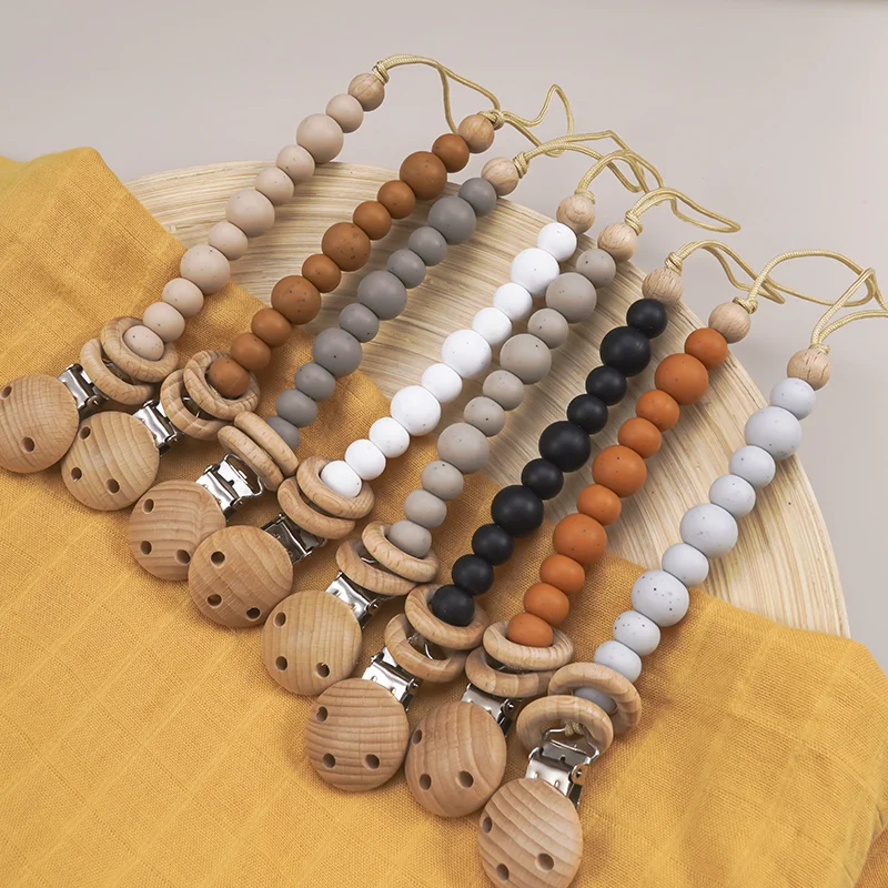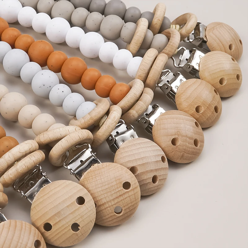 Новый органический деревянный зажим для соски-пустышки для малышей, нетоксичный, без БФА, портативный детский силиконовый цепочка для соски, качественные Подарки