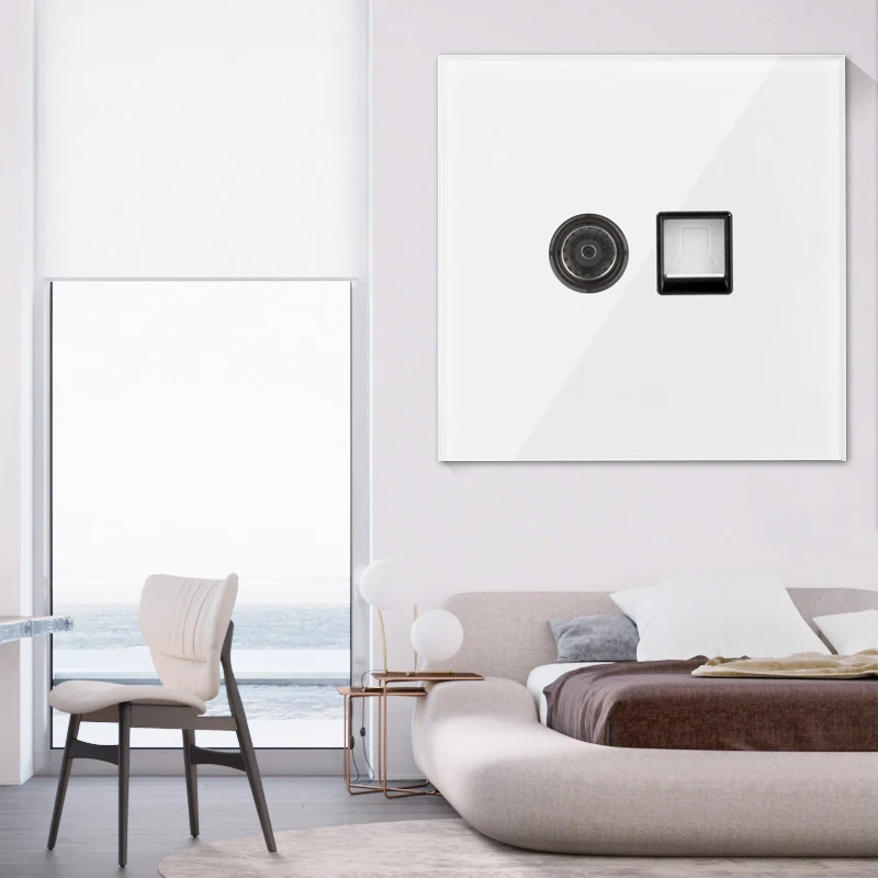 Телефонная розетка RJ45 Cat5e Cat3 для компьютера, передачи данных, спутникового ТВ, ТВ, сигнала, розетка настенная для ПК, разъем для передачи данных, белая стеклянная рамка