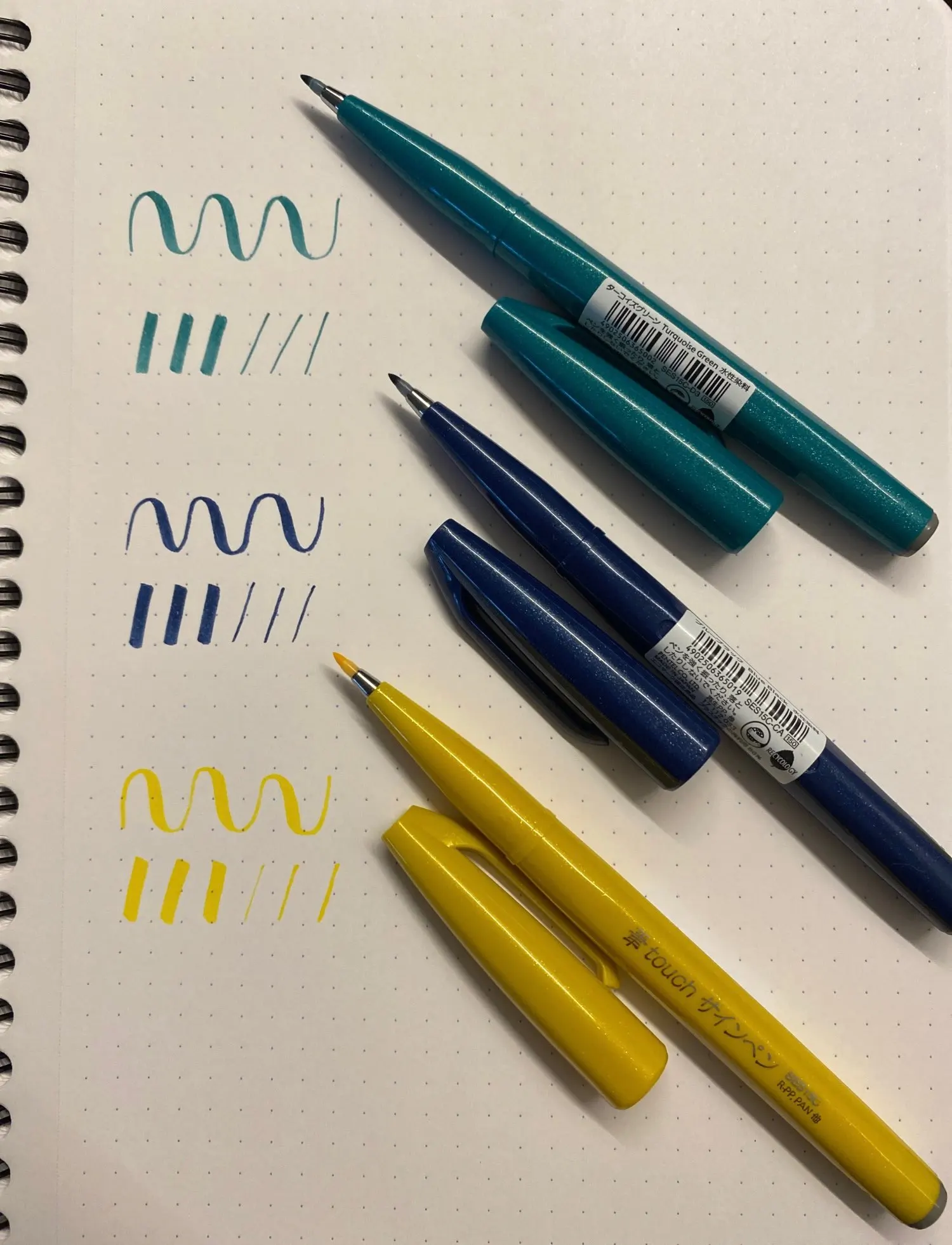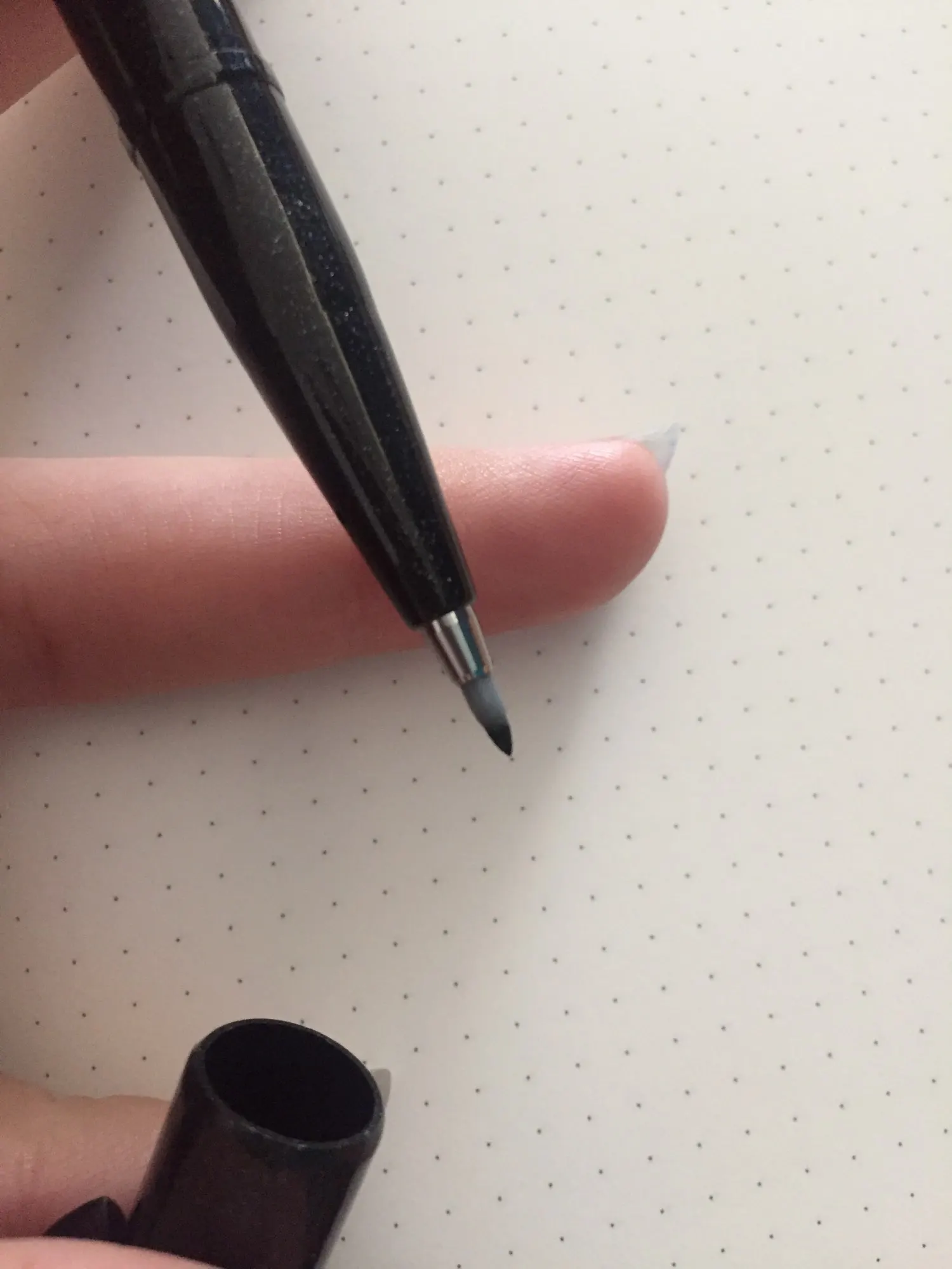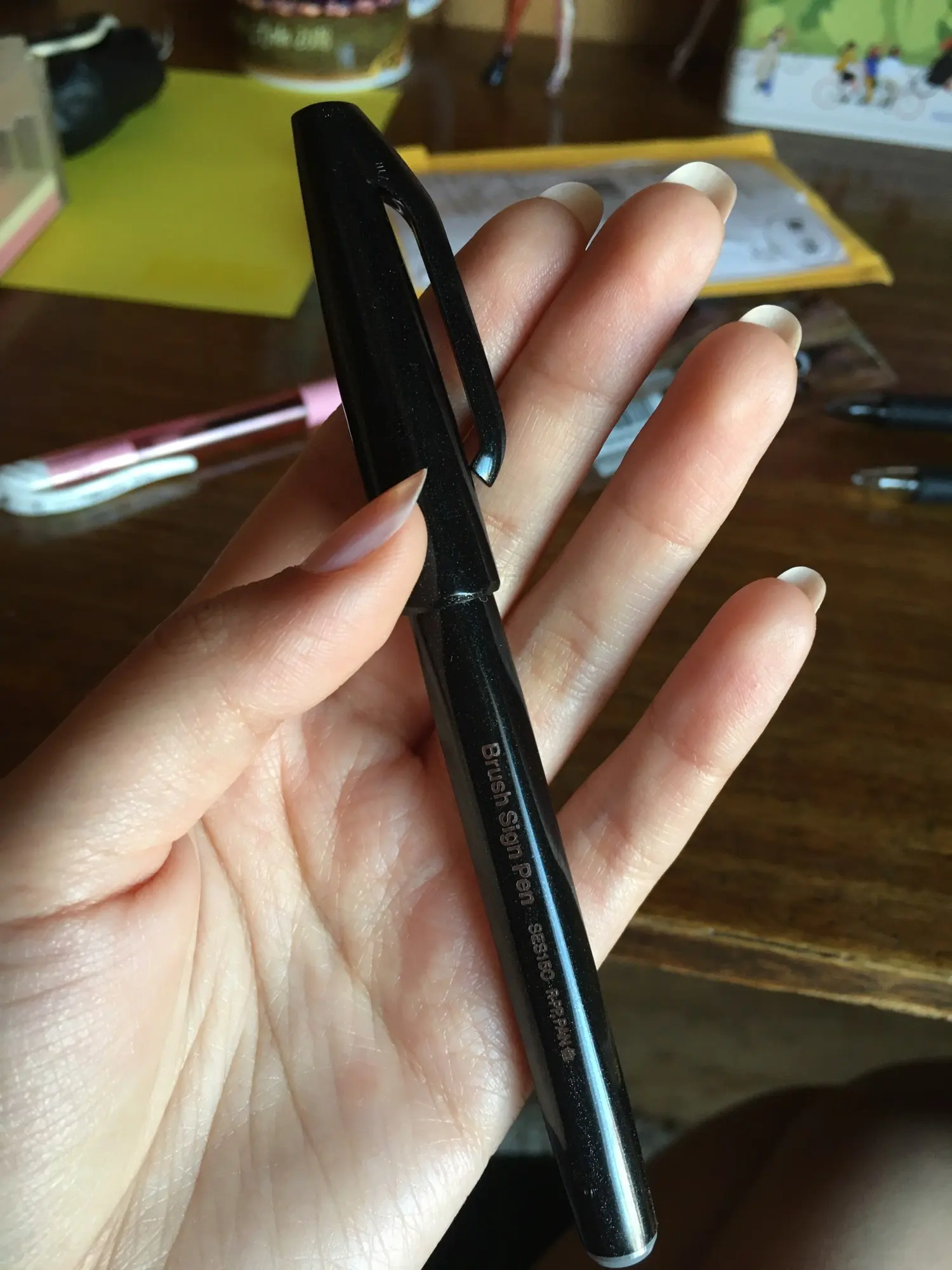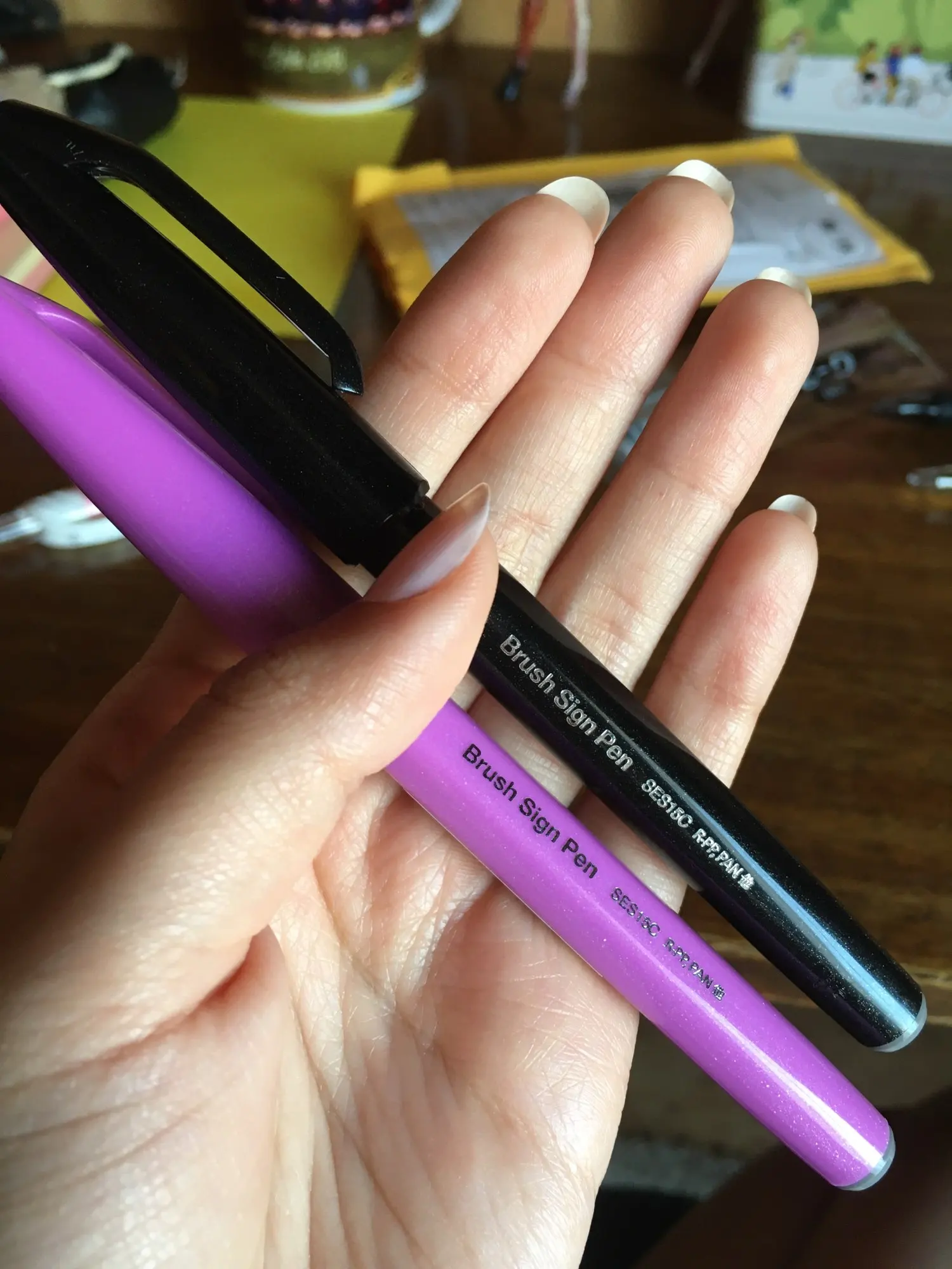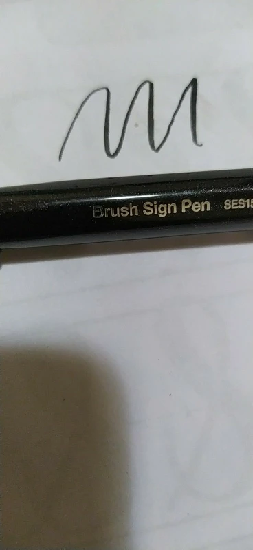 На кисточку слабо тянет. Яркий насыщенный цвет чернил, тонкий, упругий наконечник, но это не brushpen однозначно.