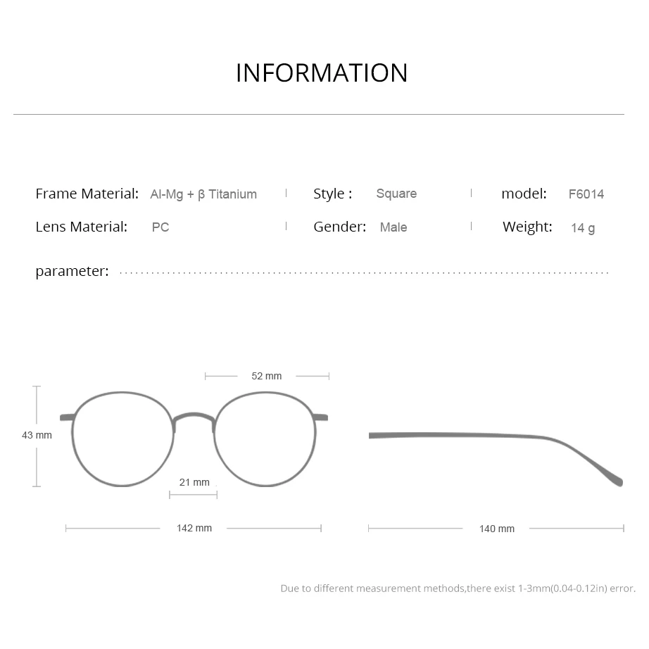 Оправа для очков Мужская квадратная, из чистого титана и алюминия-магния, с защитой от синего света, для работы за компьютером при близорукости, модель A6128