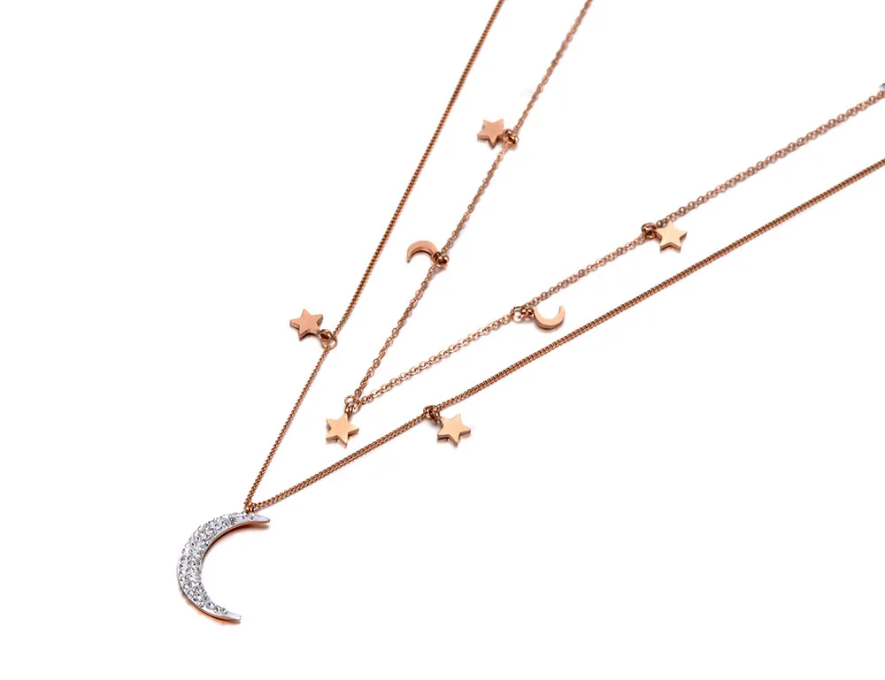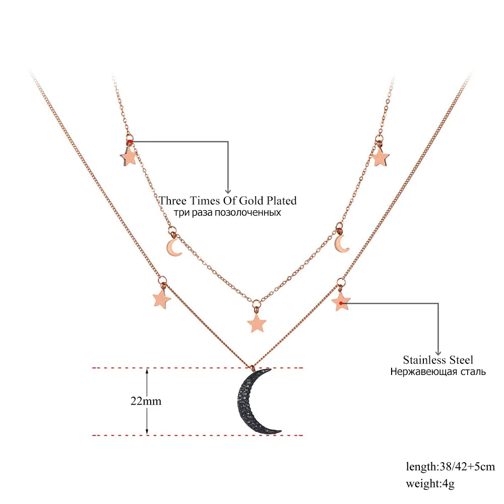 Женский двухслойный чокер BOBOTUU, неоготическое ожерелье из нержавеющей стали с изображением звезд и Луны, ювелирное изделие, симпатичное ожерелье с подвеской BN19164