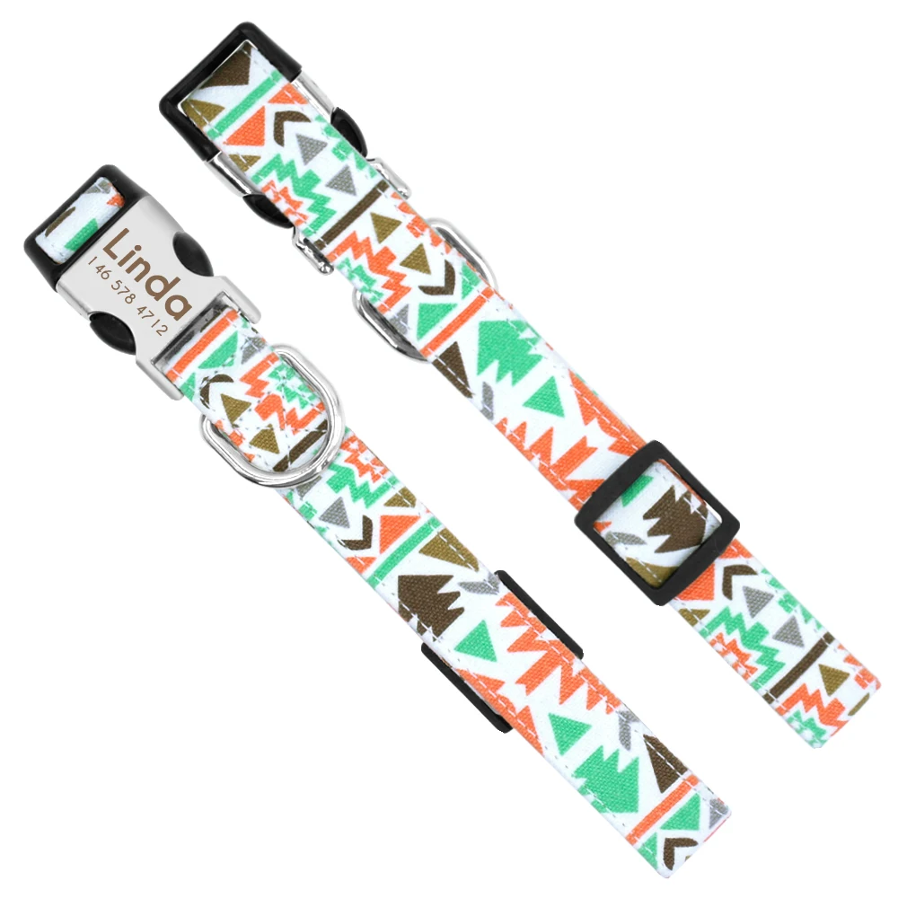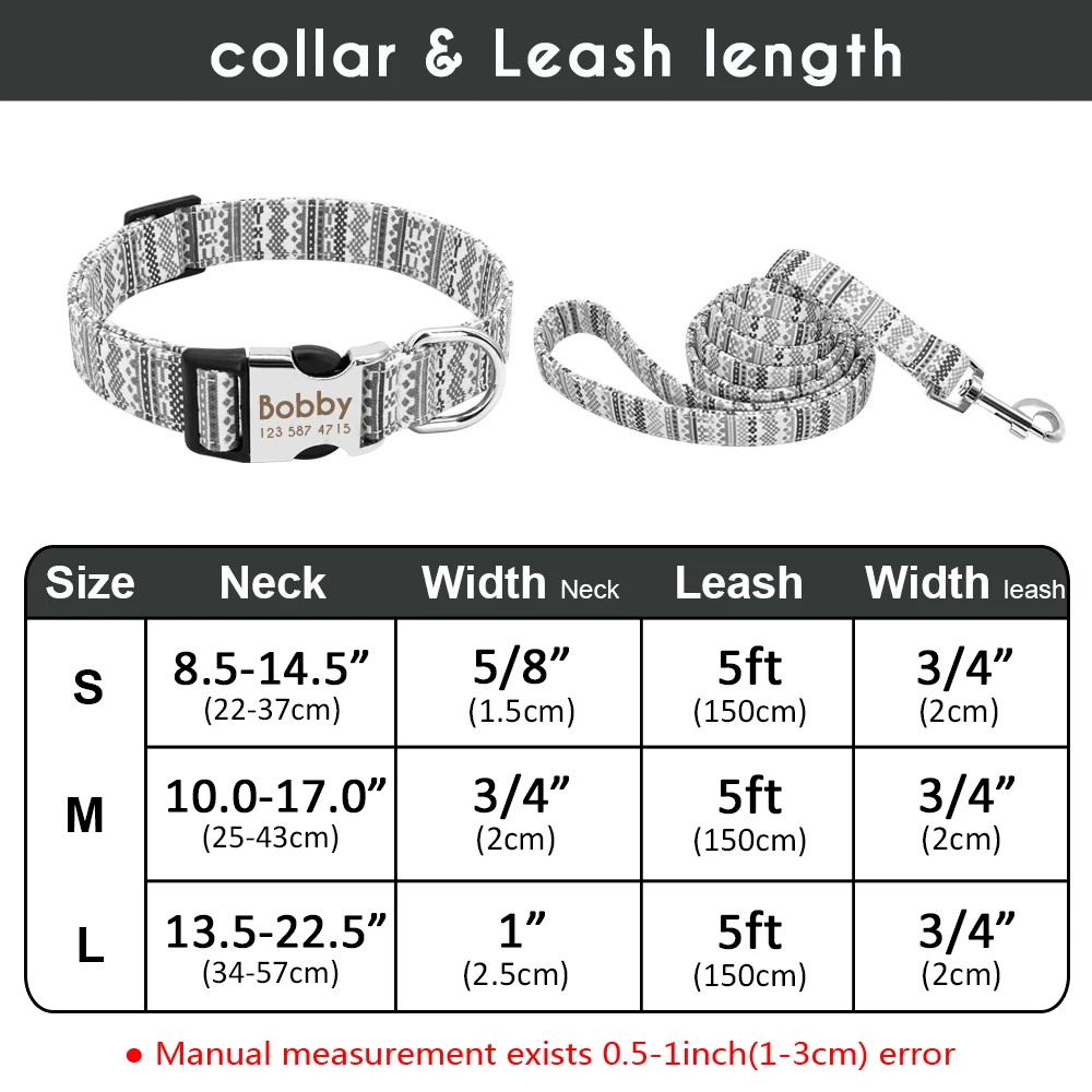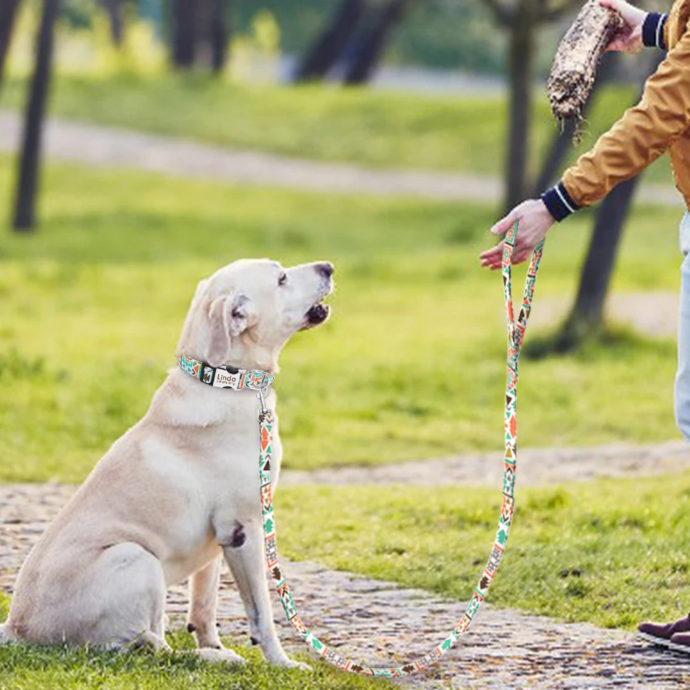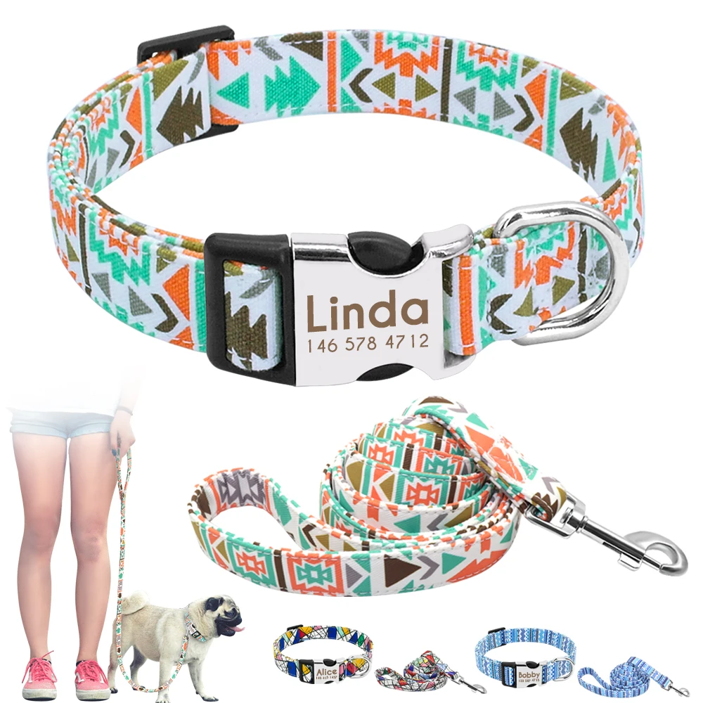 Нейлоновый ошейник и поводок для собак на заказ, персонализированный ошейник для бирка для собаки с принтом, ID Ошейники для питомцев, средний и большой размер