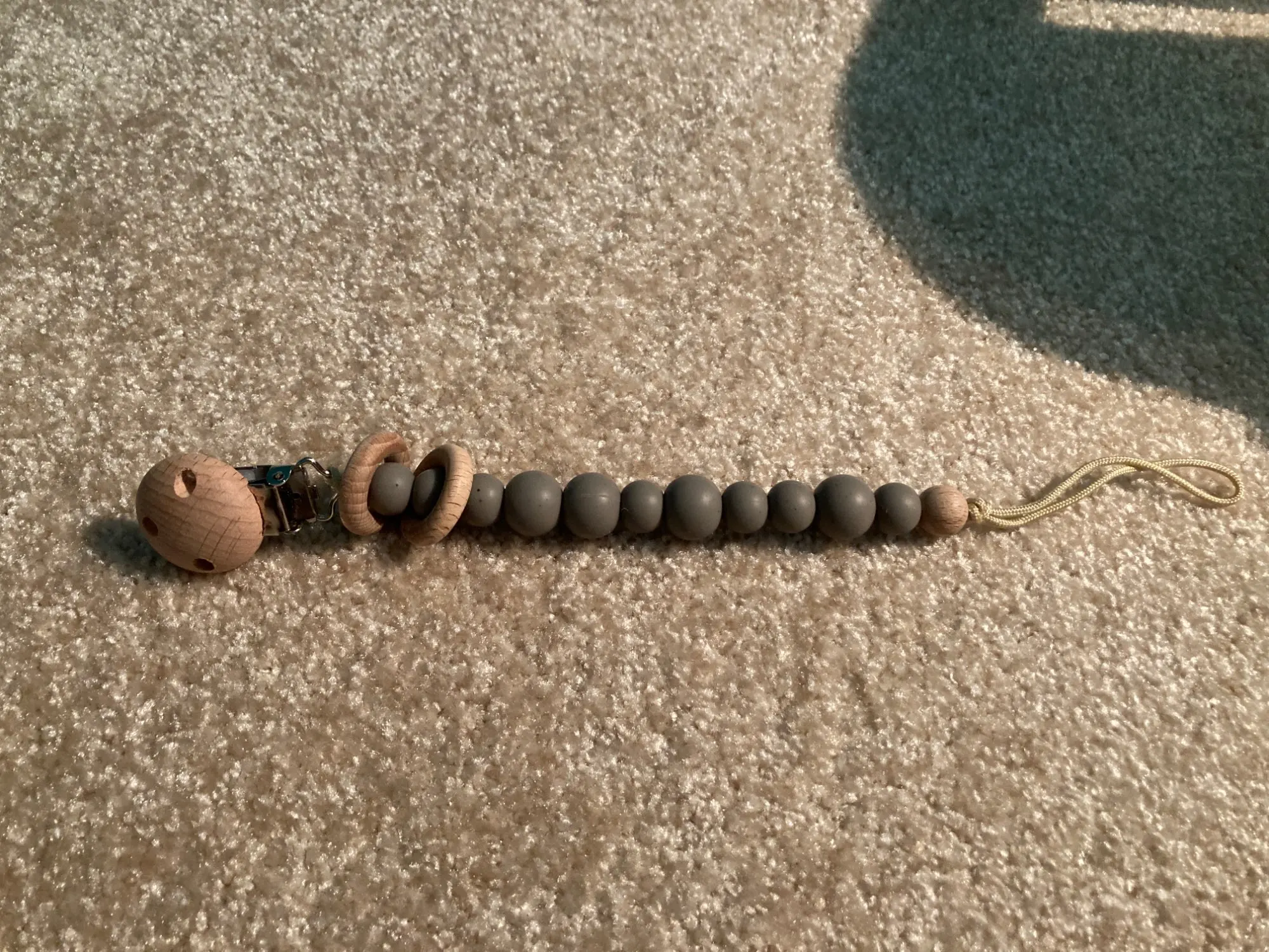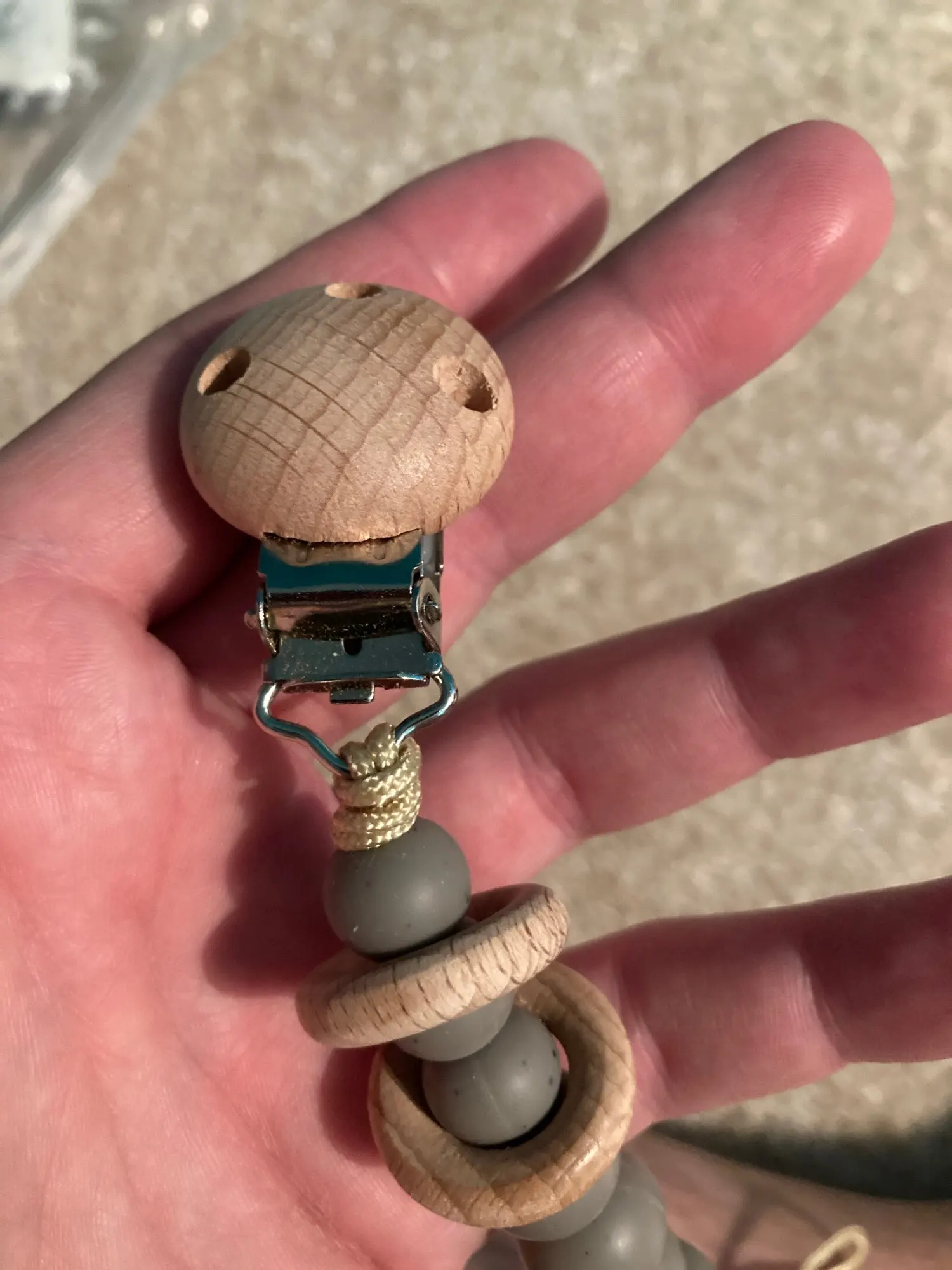 Хорошее качество. По какой-то причине я думал, что это дерево, но это силикон, потрясающий для снятия зубов. Выглядит так мило на одежде моего ребенка. Доставка в Великобританию занимает 3 недели